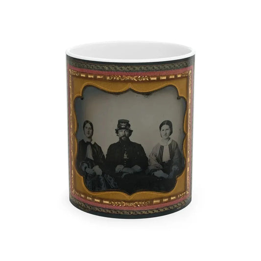 Unidentified Soldier In Infantry Uniform Sitting Between Two Women, Probably Relatives (U.S. Civil War) White Coffee Mug
