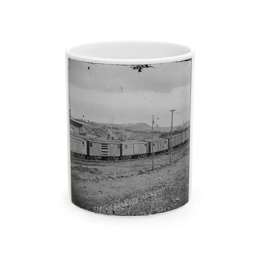 Chattanooga, Tenn. Boxcars And Depot With Federal Cavalry Guard Beyond (U.S. Civil War) White Coffee Mug