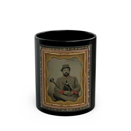 Unidentified Soldier In Confederate Uniform With Saxhorn (U.S. Civil War) Black Coffee Mug