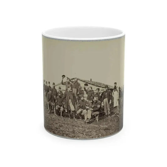 Group Of Soldiers Gathered Outside A Cabin (U.S. Civil War) White Coffee Mug