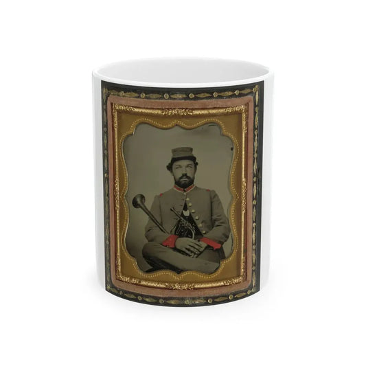Unidentified Soldier In Confederate Uniform With Saxhorn (U.S. Civil War) White Coffee Mug