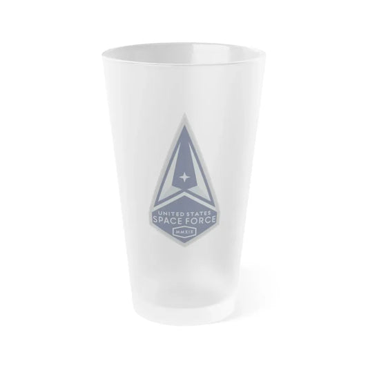 Delta Globe and Orbit Emblem, Cap Insignia (U.S. Space Force) Frosted Pint Glass 16oz