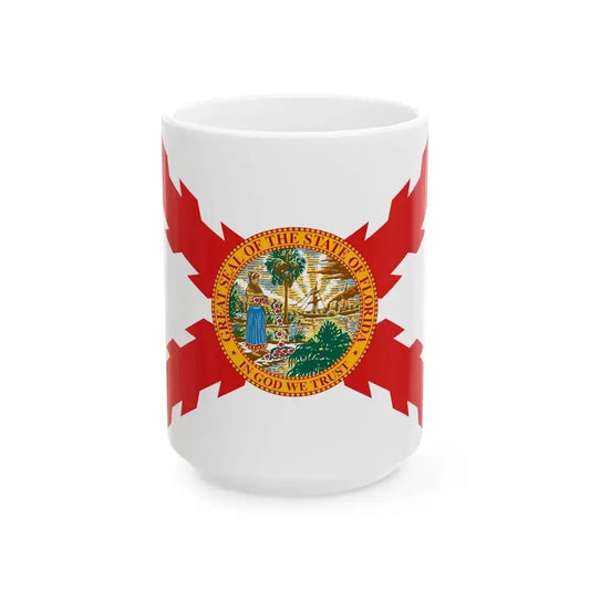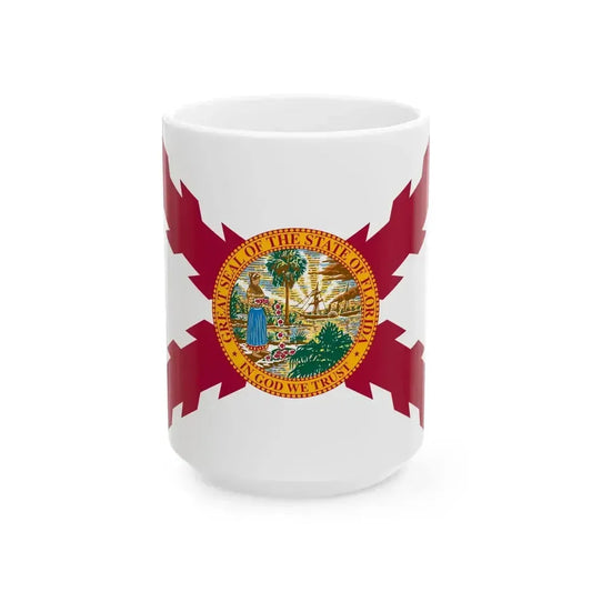 Flag of Cross of Burgundy with the Seal of Florida alternative version (United States) White Coffee Mug