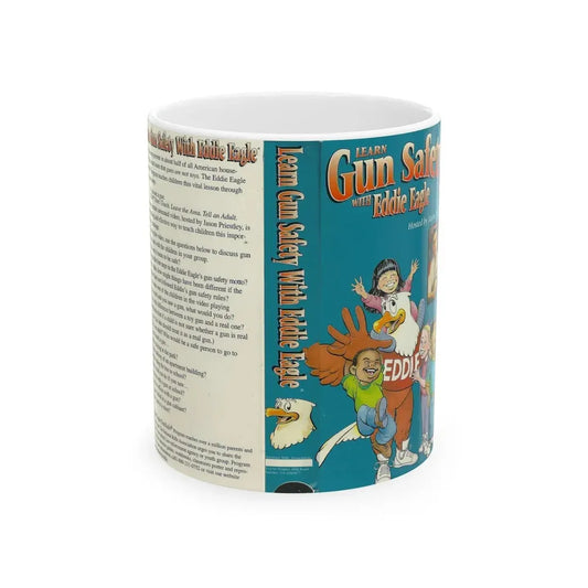 LEARN GUN SAFETY WITH EDDIE EAGLE HOSTED BY JASON PRIESTLEY (VHS COVER) - White Coffee Mug
