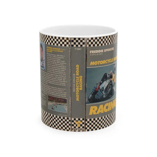 FREDDIE SPENCER EXPLAINS MOTORCYCLE ROAD RACING (VHS COVER) - White Coffee Mug