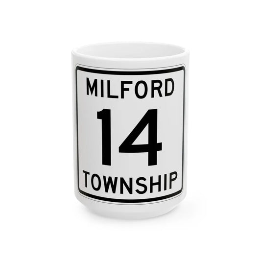 Milford Township Route 14 Knox County Ohio (Ohio) (Road Sign) White Coffee Mug