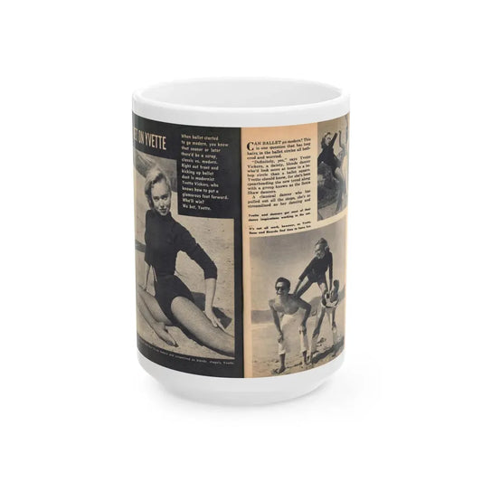 Yvette Vickers #114 - [Pages 102 & 103] Pages 1 & 2 of 4 with, Yvette Vickers+3 B&W Photos Brief Article & Caption from VUE Digest Mag. Oct. '55 (Vintage Female Icon) White Coffee Mug