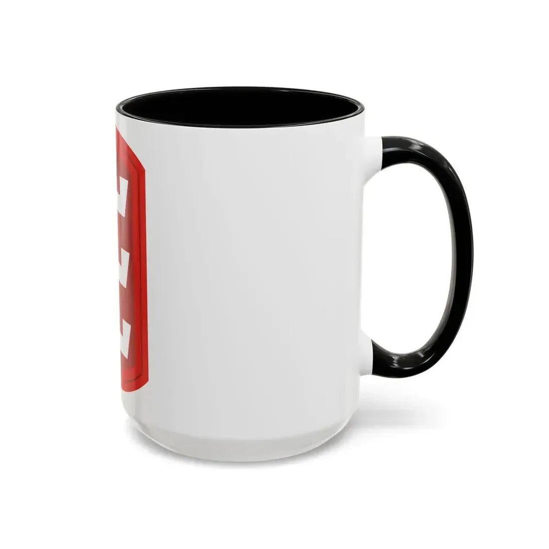 Accent ceramic mugs with a glossy white exterior and a colored interior & handle. Offered in 11 oz (≈330 ml) and 15 oz (≈440 ml), these mugs pair strong visual contrast with everyday durability — lead- and BPA-free.