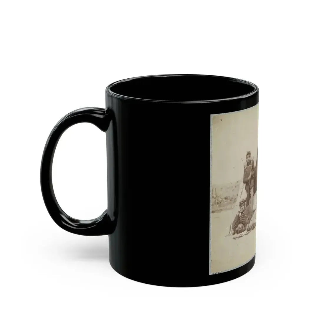 This Black Coffee Mug showcases a captivating piece of American history with its design based on the 22d New York State Militia near Harpers Ferry, Virginia during the U.S. Civil War (1861-1862). The artwork portrays the militia in a tense yet determined stance, evoking a sense of the tumultuous times that shaped our nation. History enthusiasts and those with an interest in this significant period will find this mug an intriguing addition to their collection.