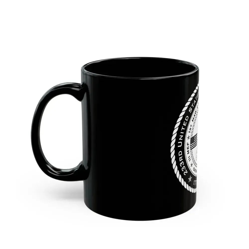 This 233rd USMC United States Marine Corps Birthday 1778 (USMC) Black Coffee Mug is a tribute to the rich history of the U.S. Marine Corps. The mug showcases an artful design that commemorates the date of the Corps' establishment - November 10, 1775. It serves as a perfect conversation starter for individuals who hold respect and admiration for the Marines and their significant role in American history.