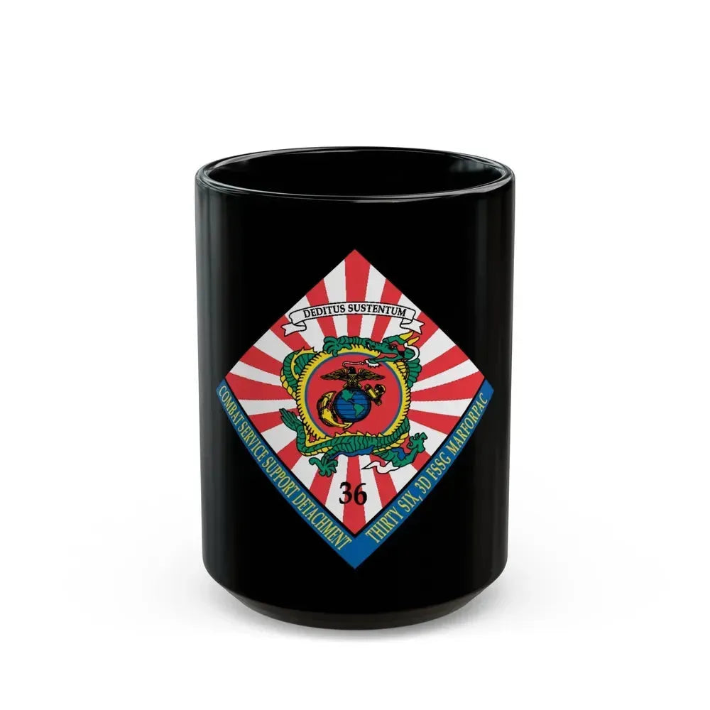The 36 Combat Service (USMC) Black Coffee Mug is a tribute to the brave men and women who serve in the United States Marine Corps. This ceramic mug showcases an intricate graphic design inspired by the iconic emblem of the U.S. Marine Corps, symbolizing the strength, courage, and resilience that defines these heroes. The design, carefully crafted with precision and attention to detail, captures the essence of the elite marine force, making it a perfect conversation starter for those who appreciate military history or honor the sacrifices made by our service members.