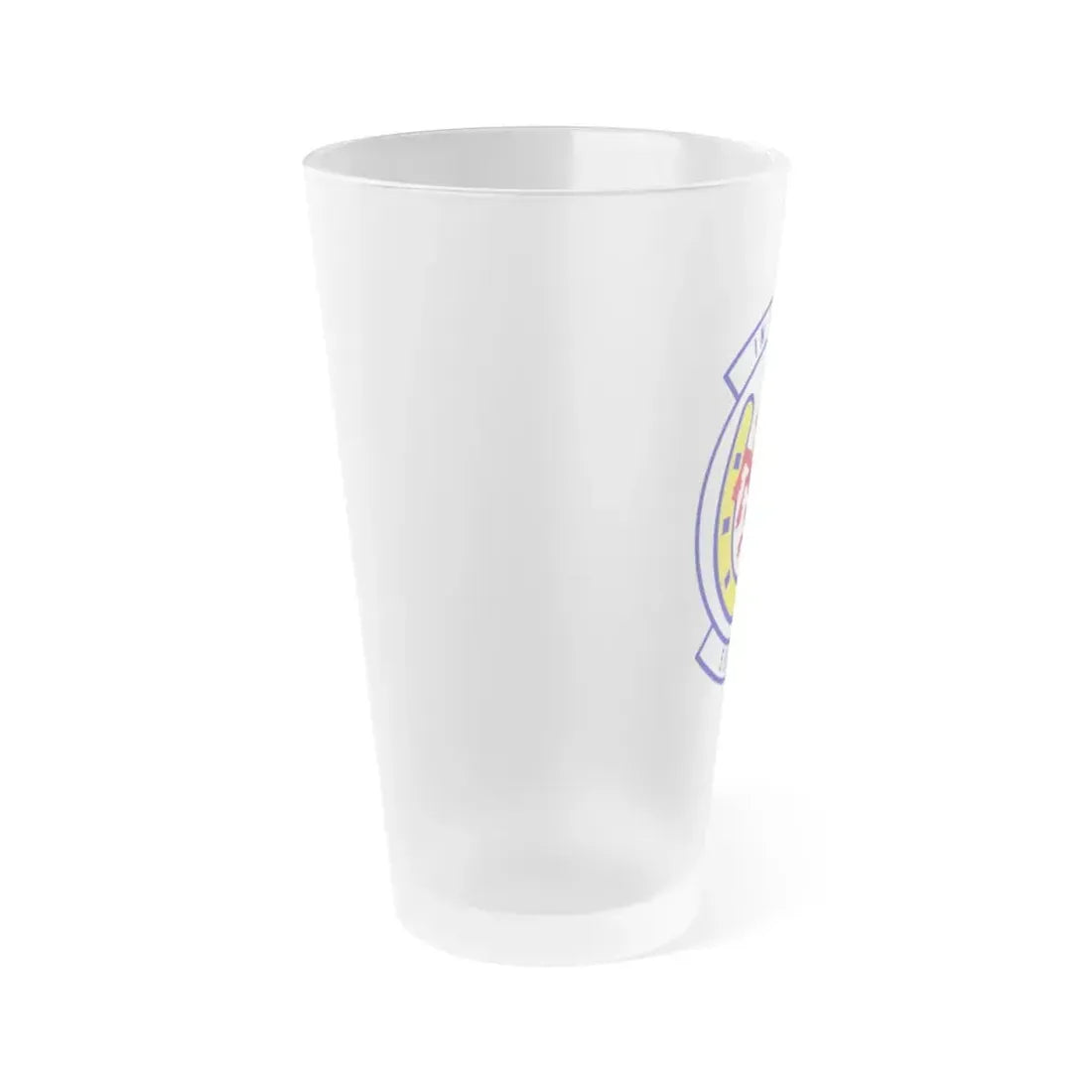 Frosted pint glass (16 oz / ≈0.47 L) with a soft matte finish and semi-translucent, one-sided print. Tough enough for bar and restaurant use, dishwasher safe, and BPA-free — a modern take on classic pintware.