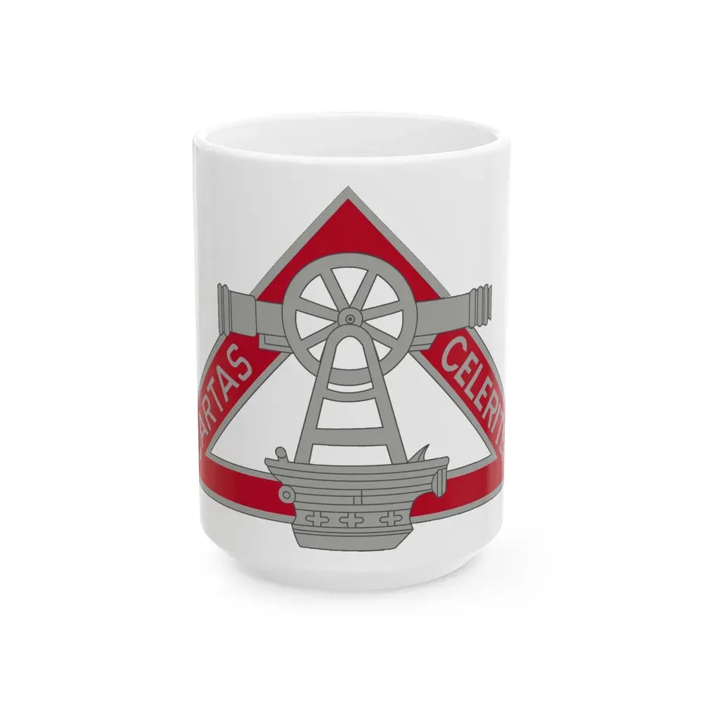 Crafted with care, this mug is made from ceramic material, ensuring durability and resistance to heat. The white background provides a clean backdrop for the intricate design details of the 69th Engineering Battalion insignia. Whether you're a proud military veteran or simply appreciate the history behind our armed forces, this mug is an excellent addition to your kitchenware collection.