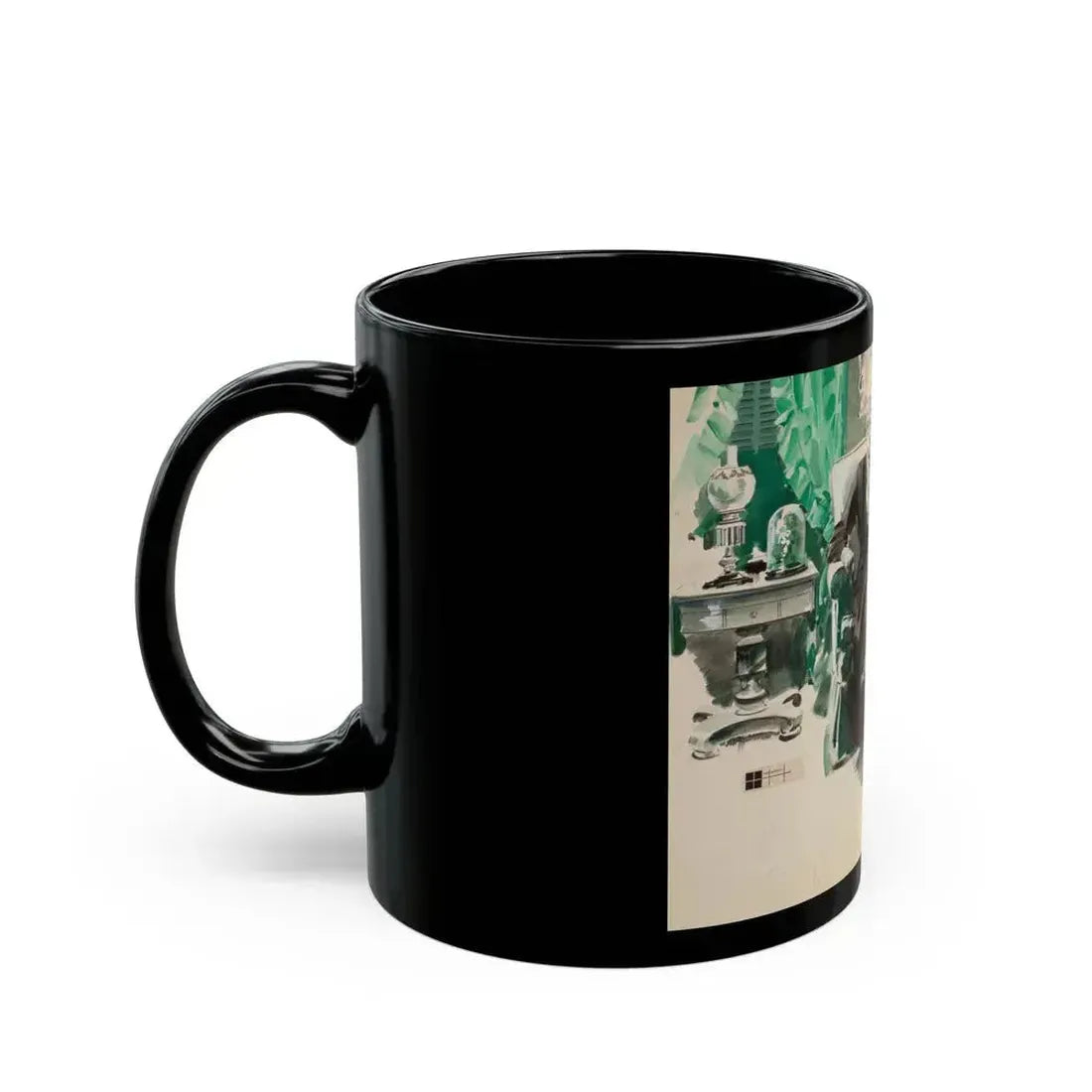 Step back in time with this Black Coffee Mug inspired by a captivating magazine story illustration from the late 1930s. The design encapsulates an intimate conversation, a moment frozen in black-and-white artistry that evokes a sense of nostalgia and intrigue. This unique piece of drinkware brings to life the classic charm and elegance of yesteryears, making it an exceptional addition to any vintage enthusiast's collection.