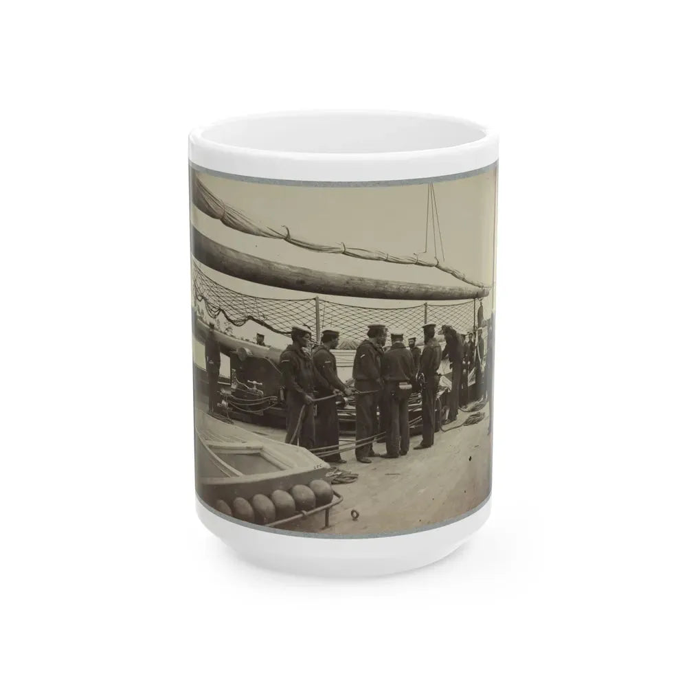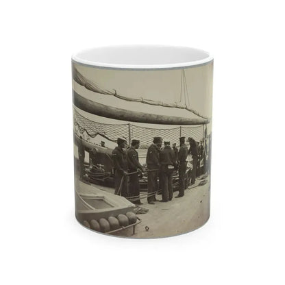 A Gun Crew On Deck Of U.S.S. Mendota, James River, Va. (U.S. Civil War) White Coffee Mug