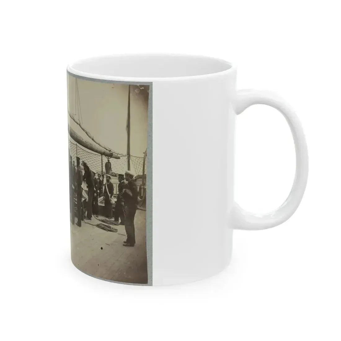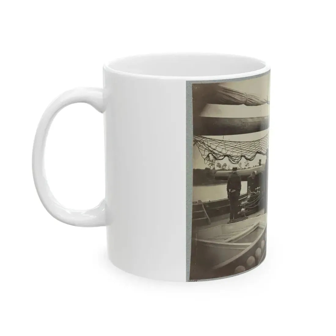 Delve into the past with our "A Gun Crew On Deck Of U.S.S. Mendota, James River, Va." White Coffee Mug. This historical design showcases a captivating illustration of a U.S. Navy gun crew during the U.S. Civil War, evoking the spirit and determination that defined this crucial era. The artwork on the mug depicts sailors manning their guns, with the U.S.S. Mendota prominently displayed in the background. Ideal for history enthusiasts or anyone who appreciates unique and cool drinkware, this mug serves as a daily reminder of the valor and tenacity that marked the U.S. Civil War.