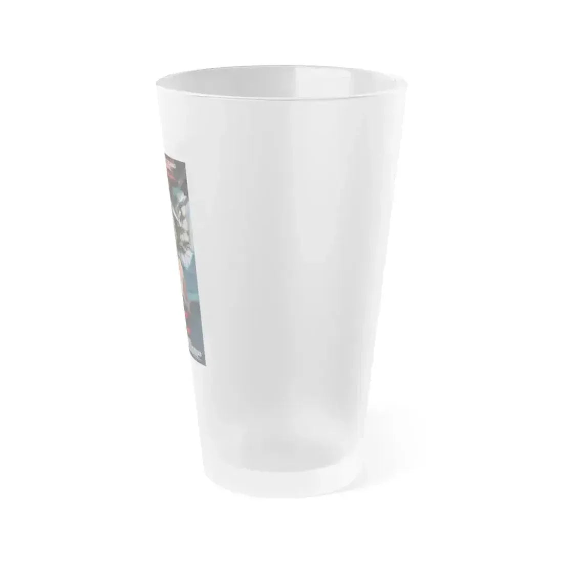 Frosted pint glass (16 oz / ≈0.47 L) with a soft matte finish and semi-translucent, one-sided print. Tough enough for bar and restaurant use, dishwasher safe, and BPA-free — a modern take on classic pintware.