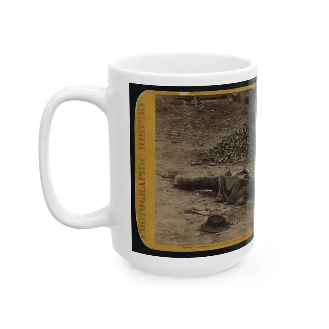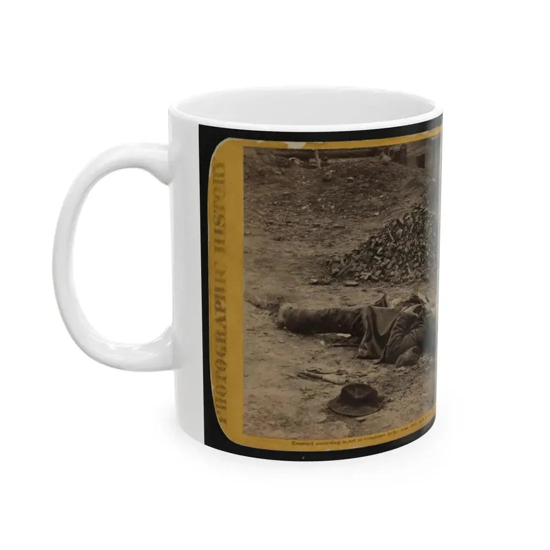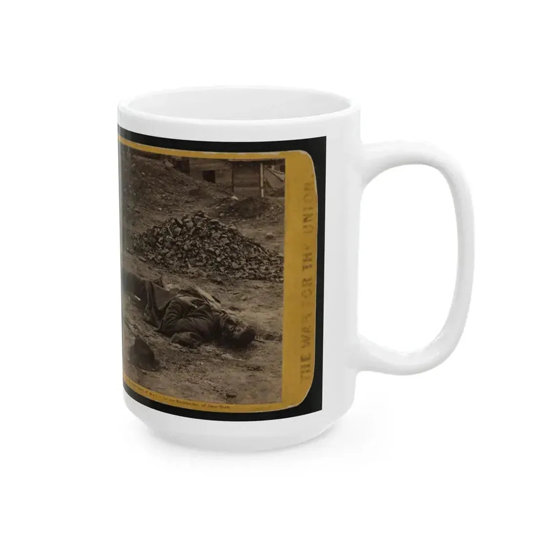 Step back in time with this captivating coffee mug, featuring a poignant design inspired by the U.S. Civil War era. The Rebel Soldier, Killed In The Trenches Before Petersburgh (I.E. Petersburg) artwork showcases a brave Confederate soldier, paying tribute to the heroism and sacrifice of those who fought during this pivotal period in American history. This design is perfect for history buffs, military enthusiasts, or anyone who appreciates unique and cool drinkware.