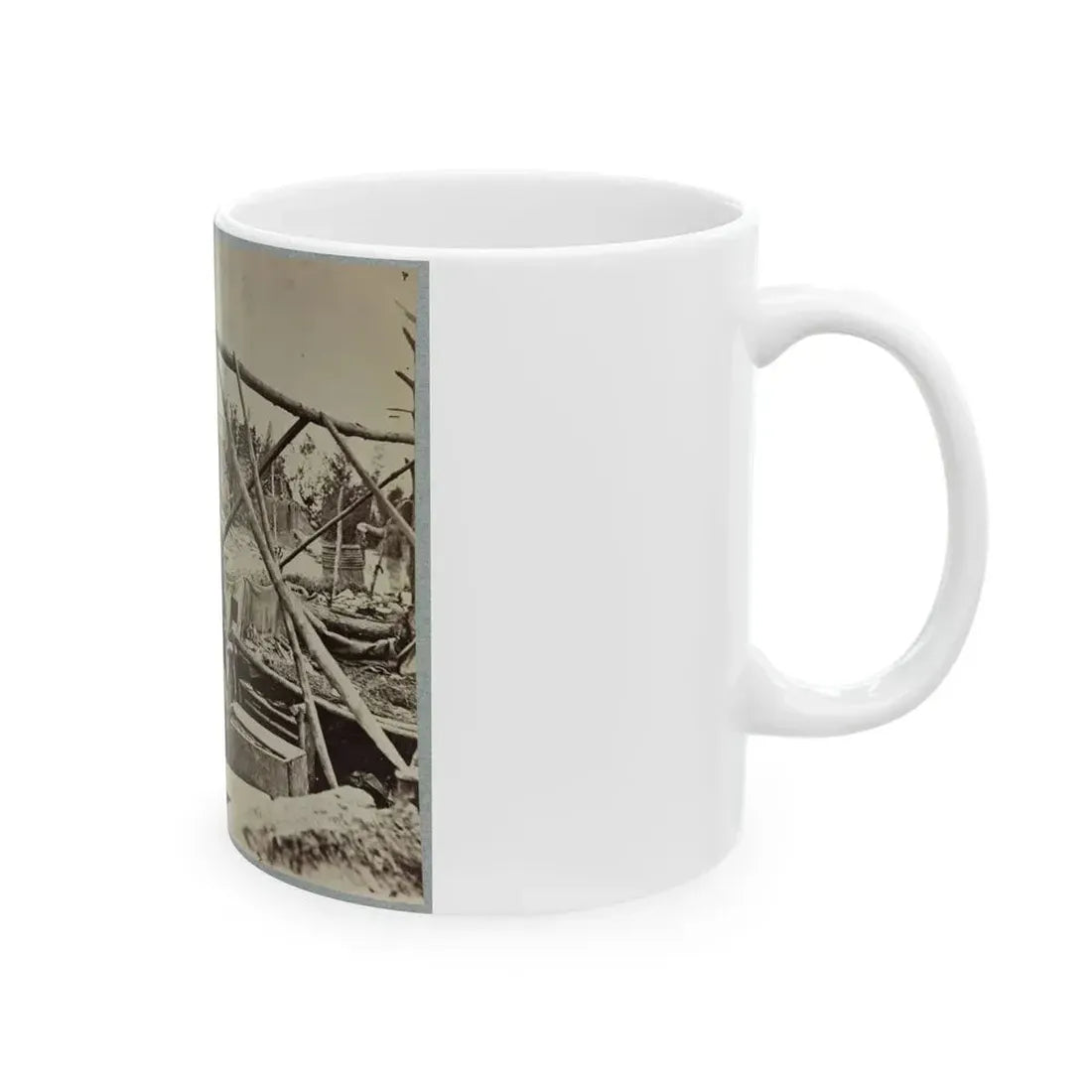 Step back in time with this unique coffee mug featuring a captivating artwork of the Abandoned Camp Of 9th Army Corps Near Falmouth, Va., during the American Civil War in February of 1863. This historical design showcases an evocative scene that offers a glimpse into a significant moment in our nation's past. The muted tones and intricate details bring the setting to life, making it an exceptional choice for history enthusiasts or anyone with an appreciation for vintage military art.