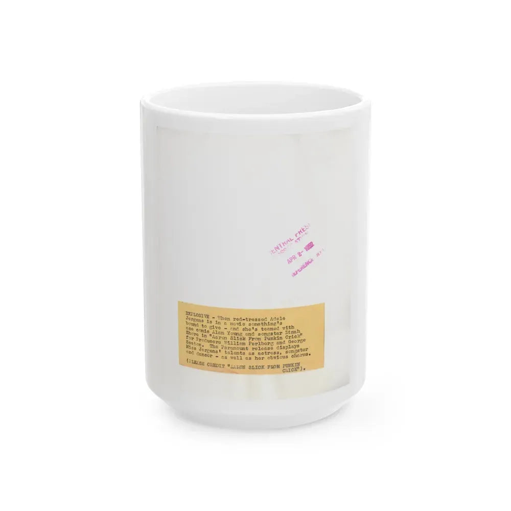 Step back into the golden age of Hollywood with this vintage glamour mug featuring Adele Jergens, a screen siren of the 1940s and 50s. This captivating black-and-white photograph, dated April 2nd, 1952, showcases Jergens' iconic upper body pose, encapsulating the elegance and allure that defined her career. The design on this white mug makes it a must-have for any vintage film enthusiast or admirer of classic Hollywood glamour. Ideal for sipping your morning coffee or hot beverage, this mug serves as a daily reminder of the timeless charm and grace embodied by Adele Jergens.