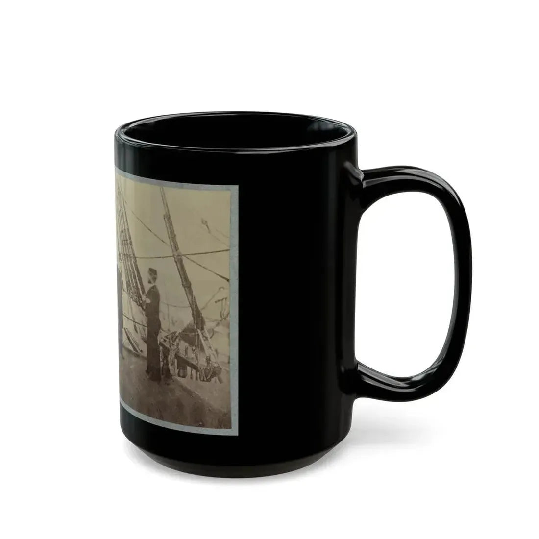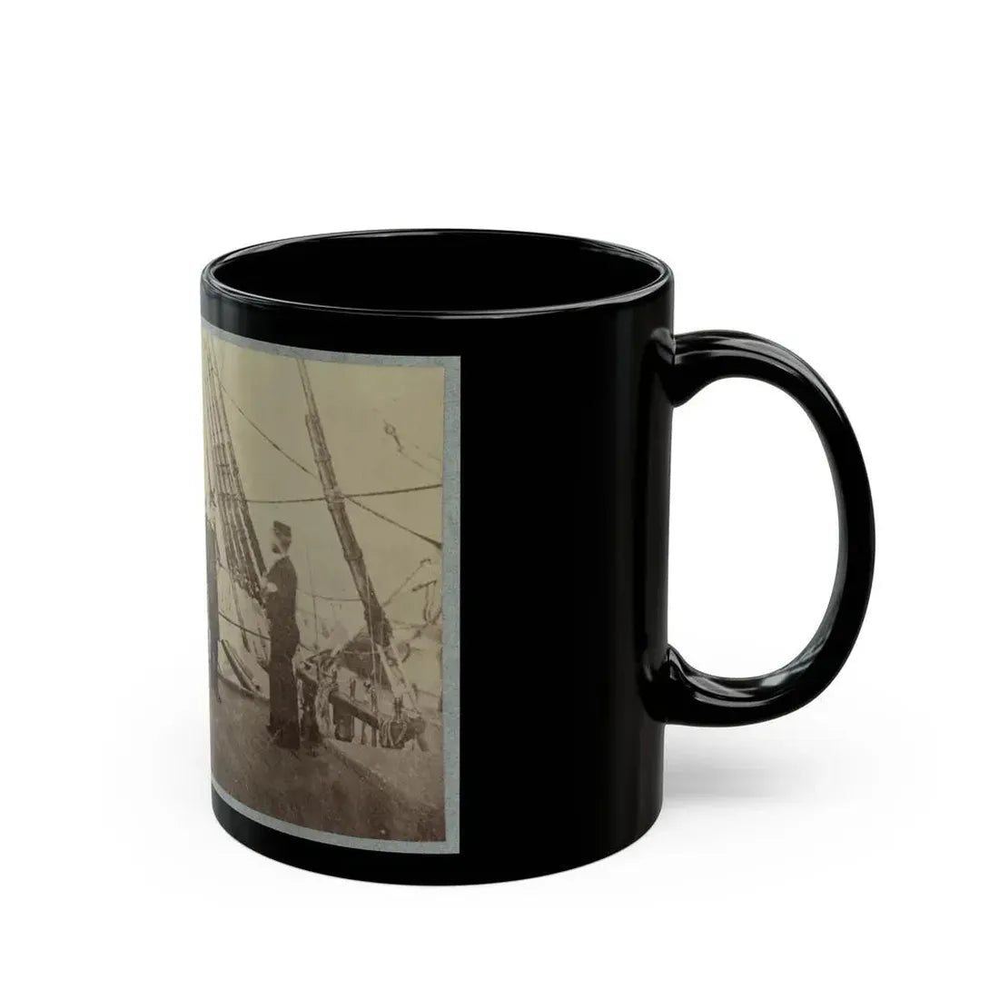 Step back in time with this intriguing coffee mug design, featuring Admiral Farragut and Captain Drayton on the deck of the U.S. Frigate Hartford during the American Civil War. This historical artwork captures a significant moment in maritime history, as the Hartford engaged Confederate forces in the Battle of Mobile Bay. History enthusiasts and art lovers alike will appreciate this unique representation of naval warfare during one of America's most pivotal conflicts.