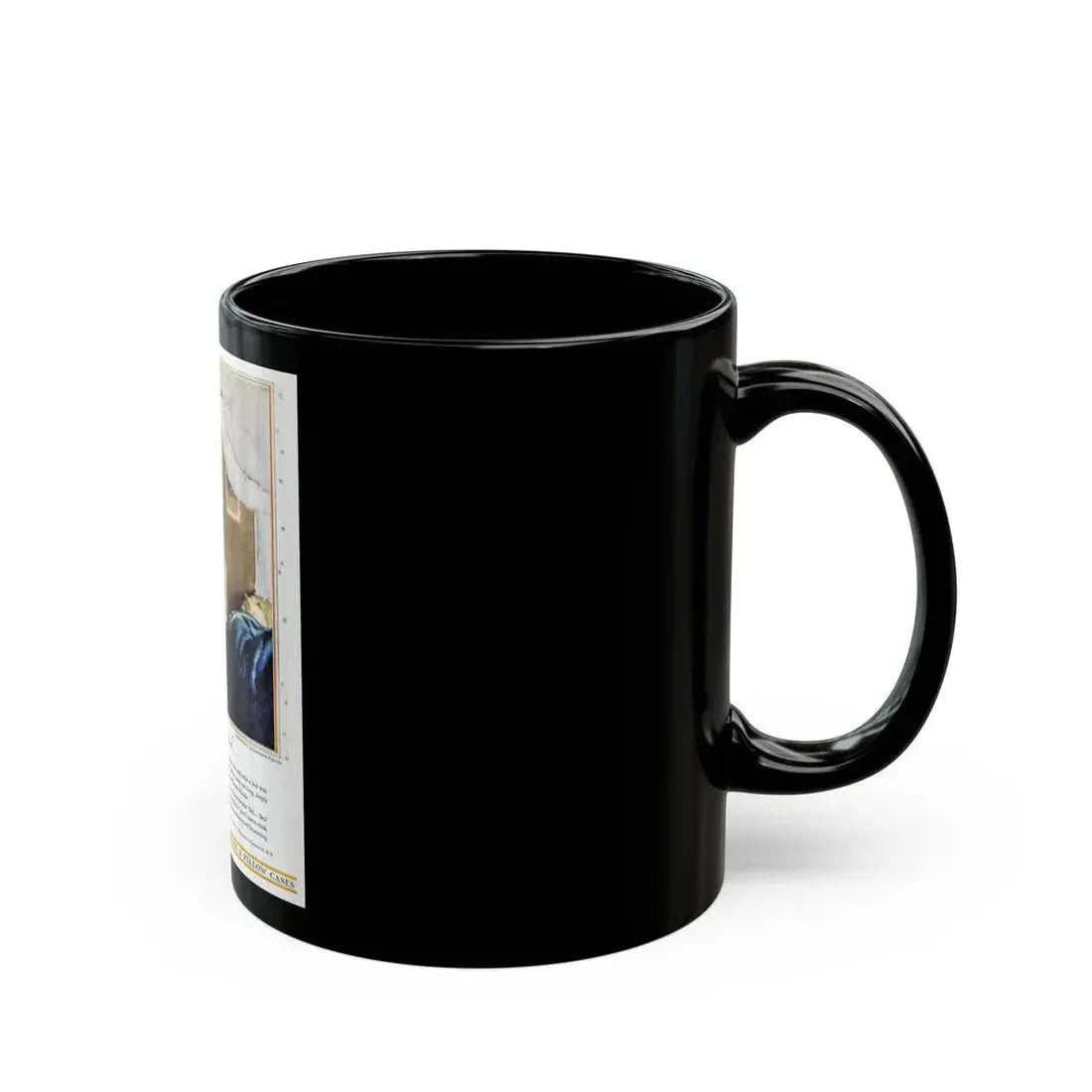 This coffee mug's got a seriously cool vibe. It's got this black candle design with a picture of a woman chilling in bed – looks like a dream, right? The colors are super calming – black, gray, white – perfect for winding down with your morning brew. It's definitely got that vintage feel, which is super awesome.