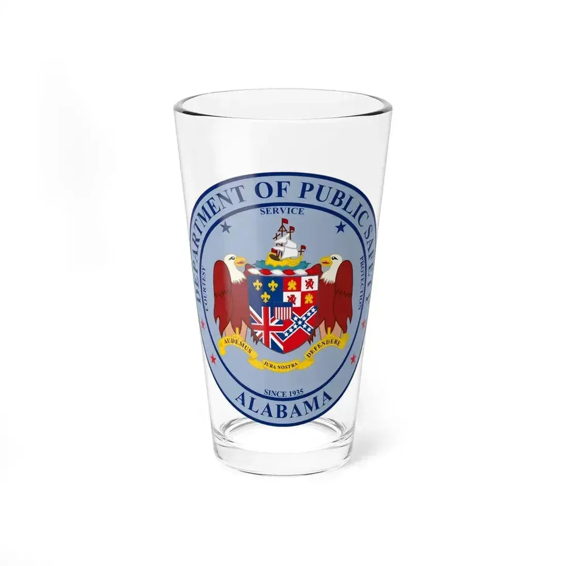 The Alabama Department of Public Safety (AL DPS) Pint Glass 16oz is a unique drinkware item that pays homage to the state's law enforcement agency. This glass features an intricate design inspired by the AL DPS emblem, symbolizing the courage, dedication, and professionalism of the department's personnel. The artwork on the glass includes key elements such as the department's star logo, a badge, and the Alabama state flag, making it a perfect conversation starter for anyone with an appreciation for public service or Southern American symbolism.