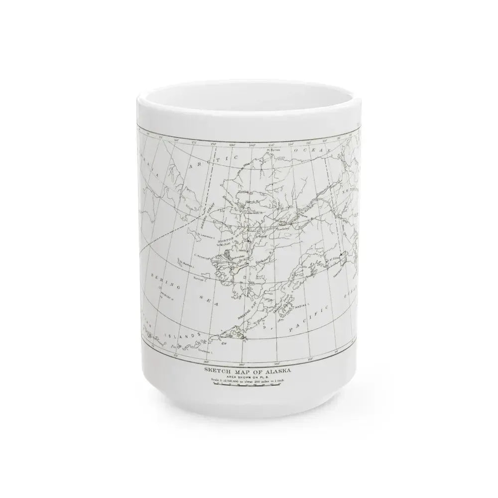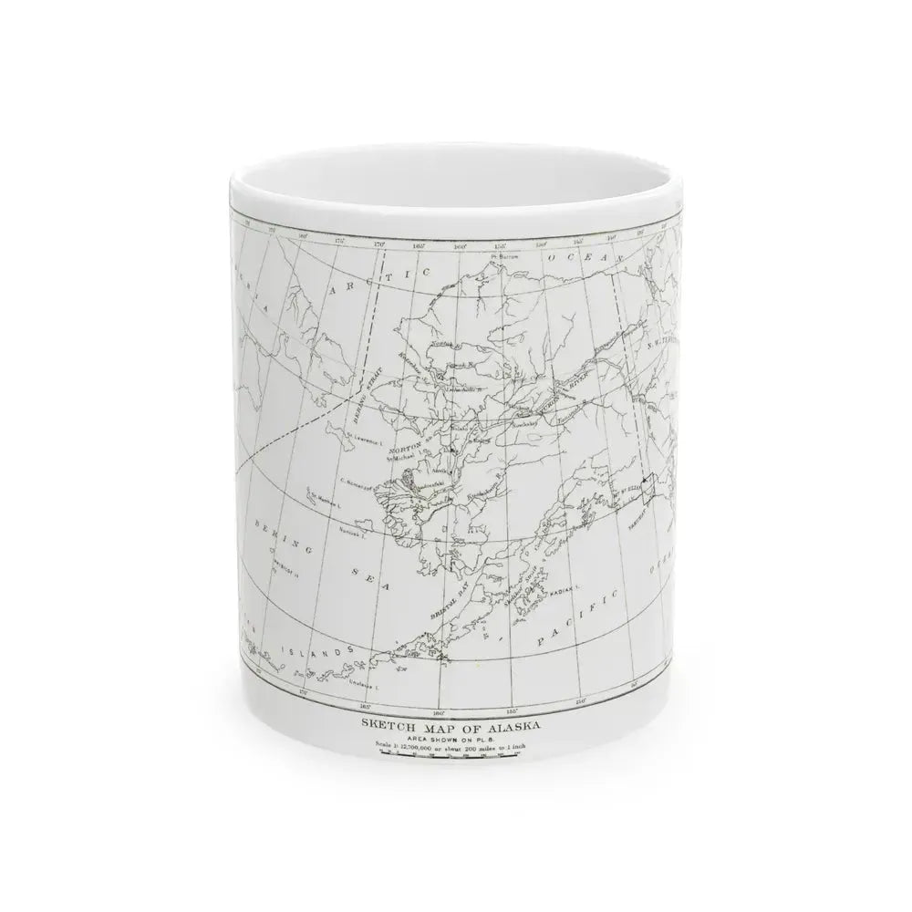 Indulge in your morning coffee with a touch of history with this Alaska - Sketch Map (1891) White Coffee Mug. This unique piece showcases a detailed sketch map of Alaska from 1891, offering a captivating glimpse into the past. The map's intricate details and geographical accuracy make it an ideal choice for history enthusiasts or anyone with a fondness for vintage cartography. Sip your coffee while tracing the contours of the Last Frontier, and let this artifact from the past elevate your daily brewing ritual.