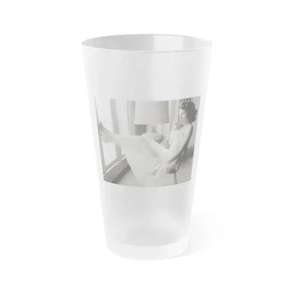 Frosted pint glass (16 oz / ≈0.47 L) with a soft matte finish and semi-translucent, one-sided print. Tough enough for bar and restaurant use, dishwasher safe, and BPA-free — a modern take on classic pintware.