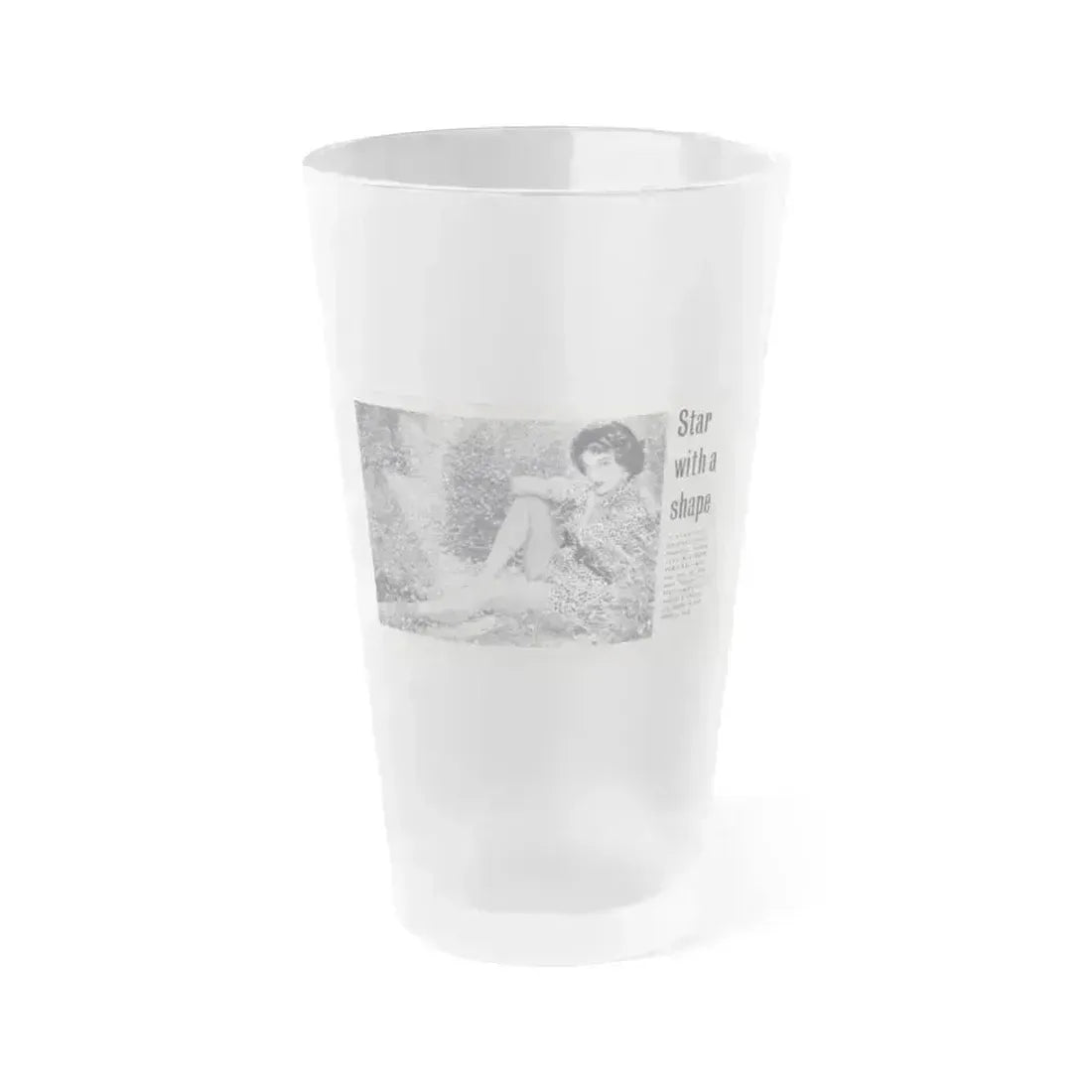 Frosted pint glass (16 oz / ≈0.47 L) with a soft matte finish and semi-translucent, one-sided print. Tough enough for bar and restaurant use, dishwasher safe, and BPA-free — a modern take on classic pintware.