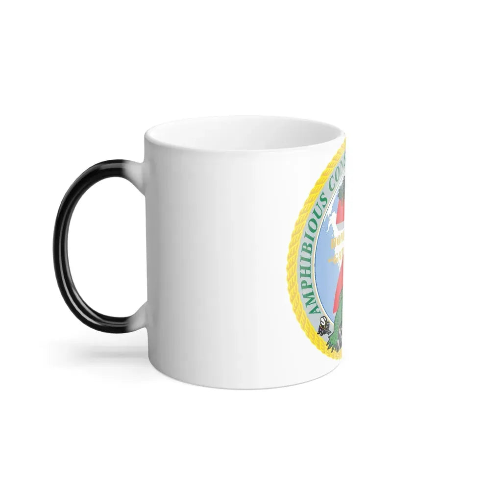 This 11oz Amphibious Construction Bn 2 SeaBees mug is a unique tribute to the U.S. Navy's Construction Battalions, also known as the Seabees. The design showcases the amphibious nature of these construction units, which operate both on land and at sea. The color-changing feature adds an element of surprise, mirroring the versatility and adaptability synonymous with the SeaBees. This mug is perfect for anyone who appreciates unique and cool drinkware, as well as those who hold a special place in their hearts for the brave men and women serving in the U.S. Navy.