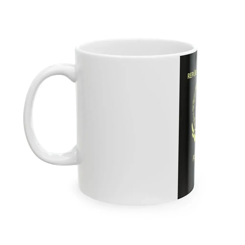 This Angolan Passport White Coffee Mug showcases a distinctive graphic design that celebrates the rich cultural heritage of Angola. The mug features an intricate reproduction of an actual Angolan passport, creating a unique conversation piece for any coffee lover or travel enthusiast. The artwork on this mug offers a glimpse into the vibrant history and diverse culture of this African nation, making it a thoughtful addition to any collection or daily routine.
