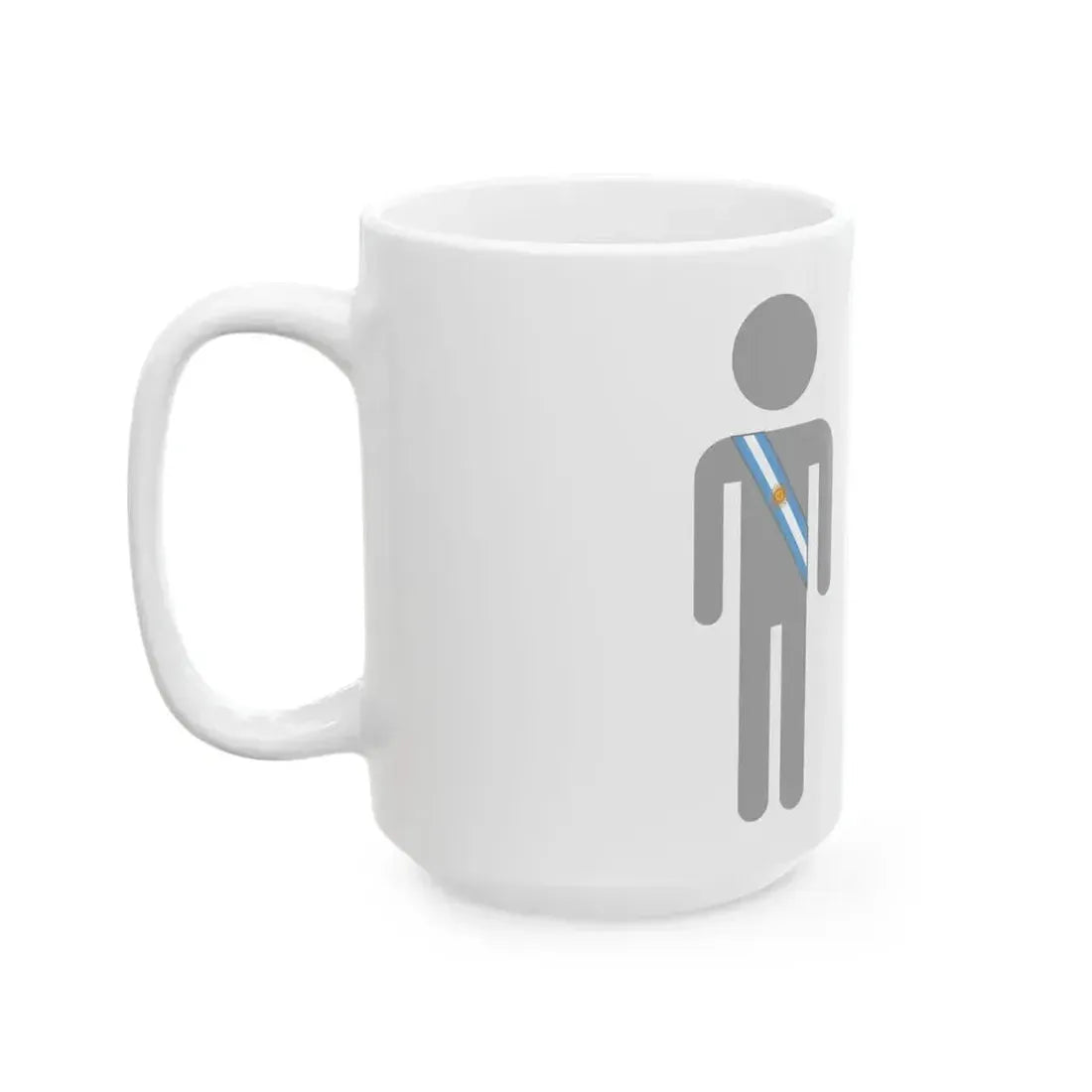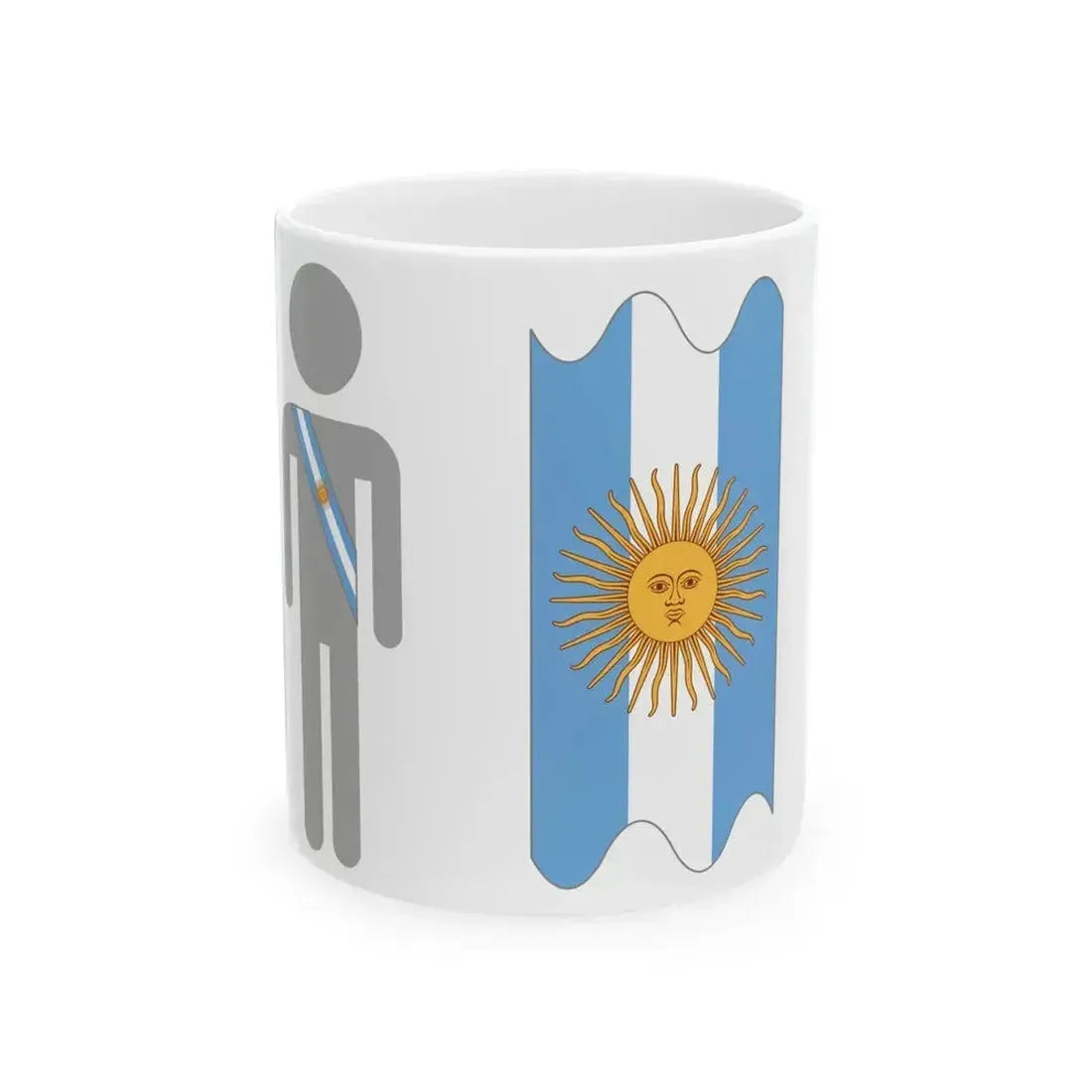 Delve into the rich cultural heritage of Argentina with this presidential sash schematic-inspired coffee mug. This unique design is a faithful representation of the traditional attire worn by the country's head of state during inauguration ceremonies. The white coffee mug showcases intricate details of the Argentine presidential sash, from its broad stripes to the delicate patterns that adorn its edges.