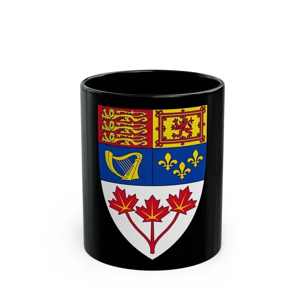 This Black Coffee Mug showcases a unique design that pays homage to Canada's rich history and symbolism. The Arms of Canada, also known as the Canadian Coat of Arms, is beautifully rendered on this mug. The design includes elements such as the Crown, three maple leaves, and two lion supporters, all symbolizing sovereignty, unity, and resilience. This mug is perfect for anyone who appreciates unique and cool drinkware, particularly those with a fondness for Canadian heritage or history.