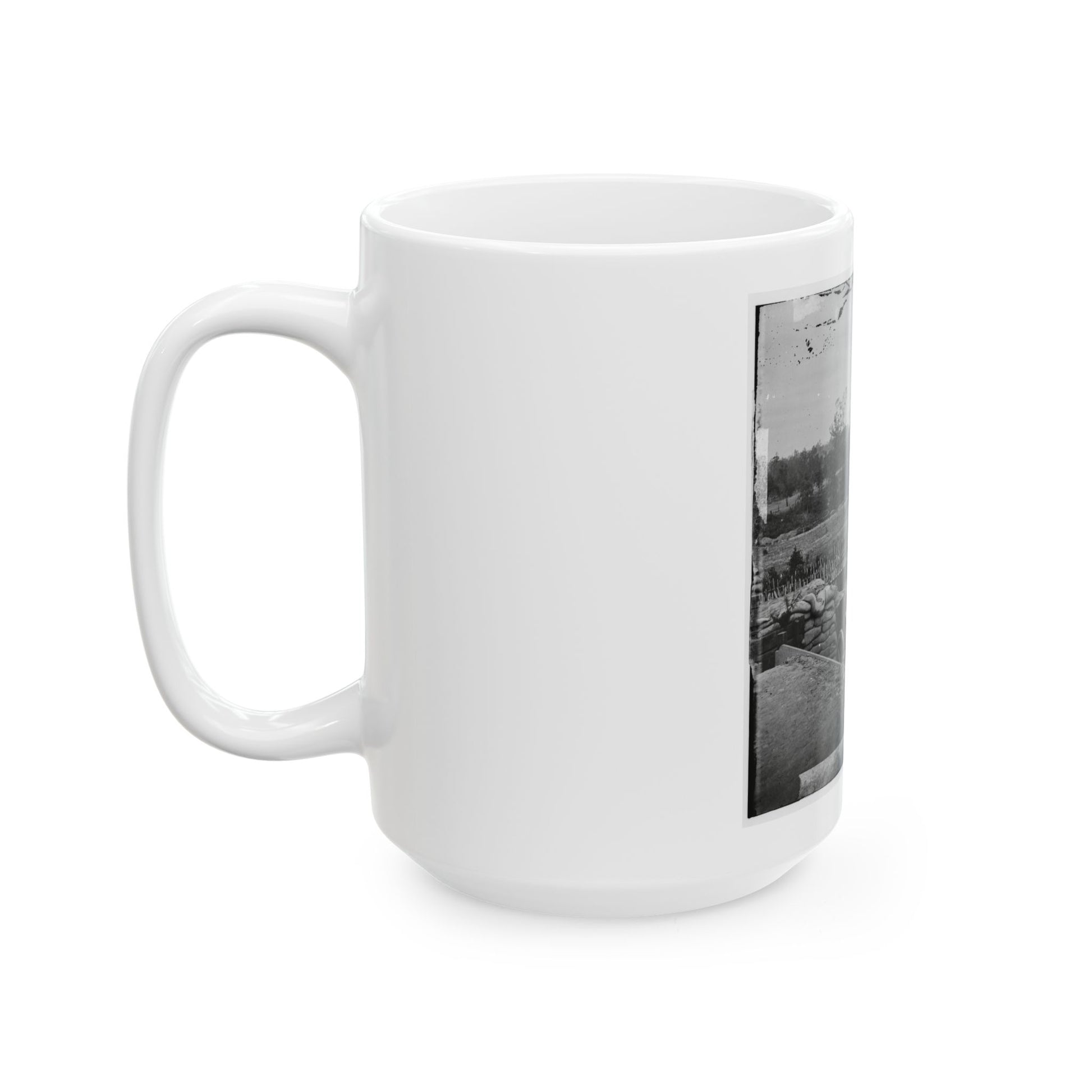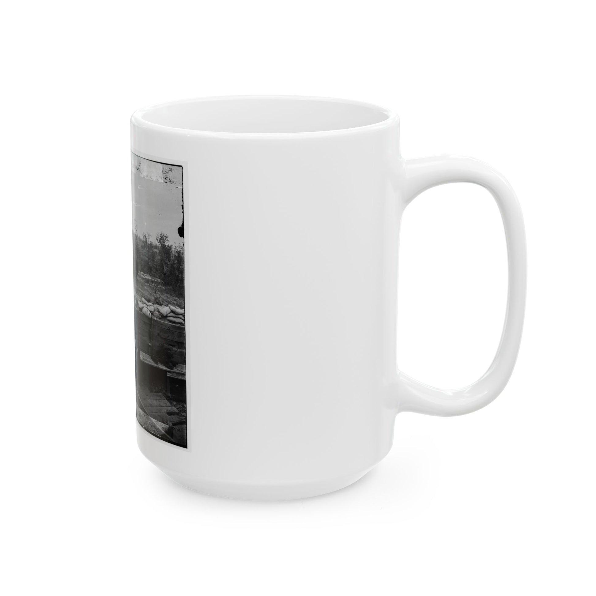 This white coffee mug showcases a captivating historical artwork depicting the Atlanta, Georgia interior view of a Confederate Fort, situated east of the W. & A. Railroad during the U.S. Civil War. The vivid graphic illustrates a fascinating glimpse into America's past, offering an educational and thought-provoking piece for any coffee lover or history enthusiast. Perfect for anyone who appreciates unique and cool drinkware.