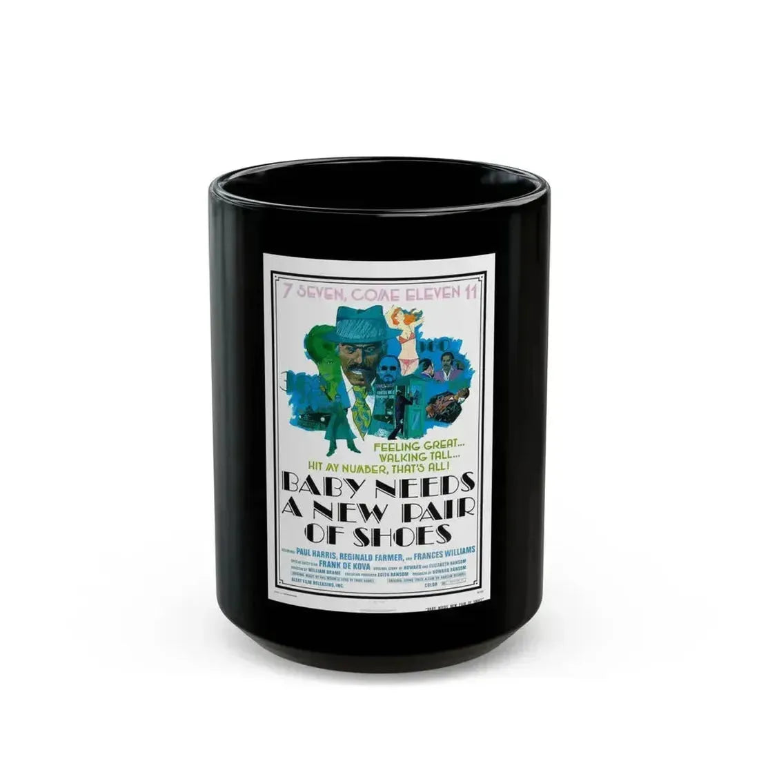 Step back in time with this Black Coffee Mug featuring the iconic design from the 1974 movie "Baby Needs a New Pair of Shoes (Jive Turkey)". This classic film was a cultural phenomenon, resonating with audiences for its unique blend of comedy and music. The mug showcases the movie's vibrant poster artwork, instantly transporting you to the groovy era of disco fever. Perfect for anyone who appreciates unique and cool drinkware, this mug is an excellent addition to any collection or a delightful gift idea for fans of the film.