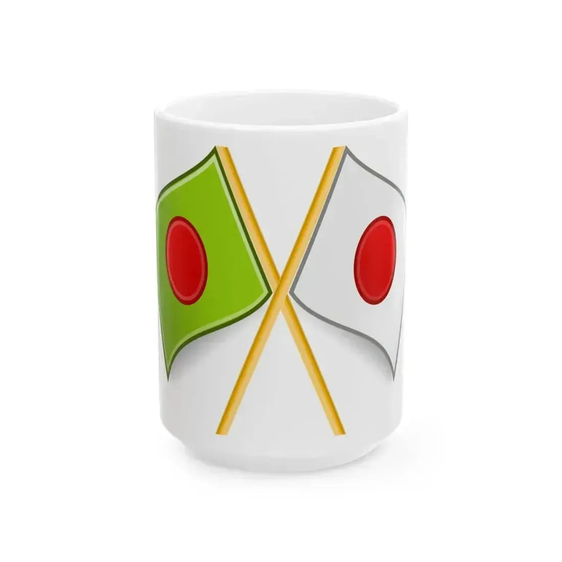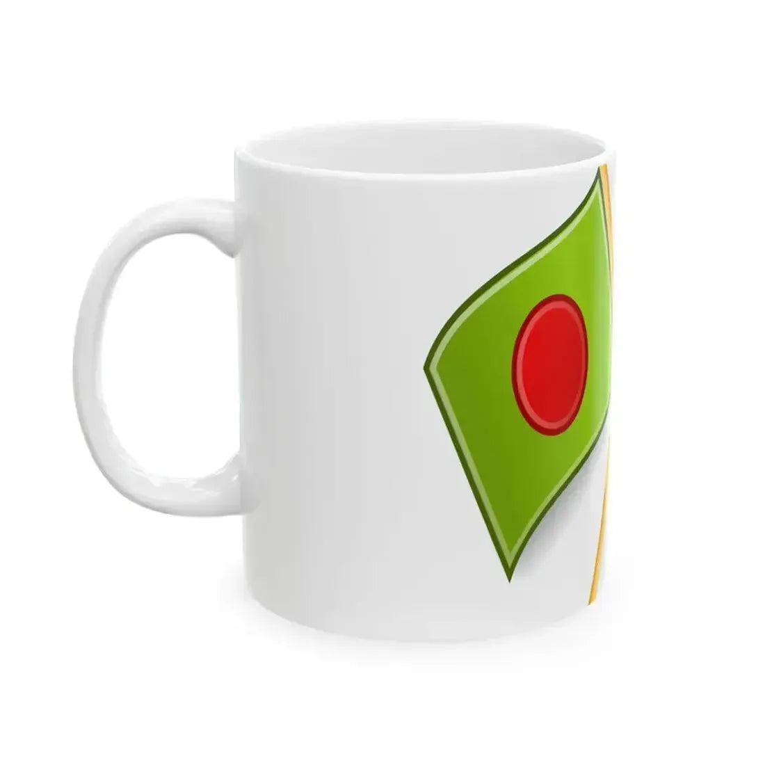 The Bangaldeshi and Japanese flags white coffee mug not only functions as a useful household item but also serves as a decorative piece that adds a touch of global flair to any kitchen or dining space. It's an ideal choice for travel enthusiasts, history buffs, or those looking to infuse their daily routine with elements of different cultures. Celebrate the union of these two nations' heraldry every morning with this captivating mug.