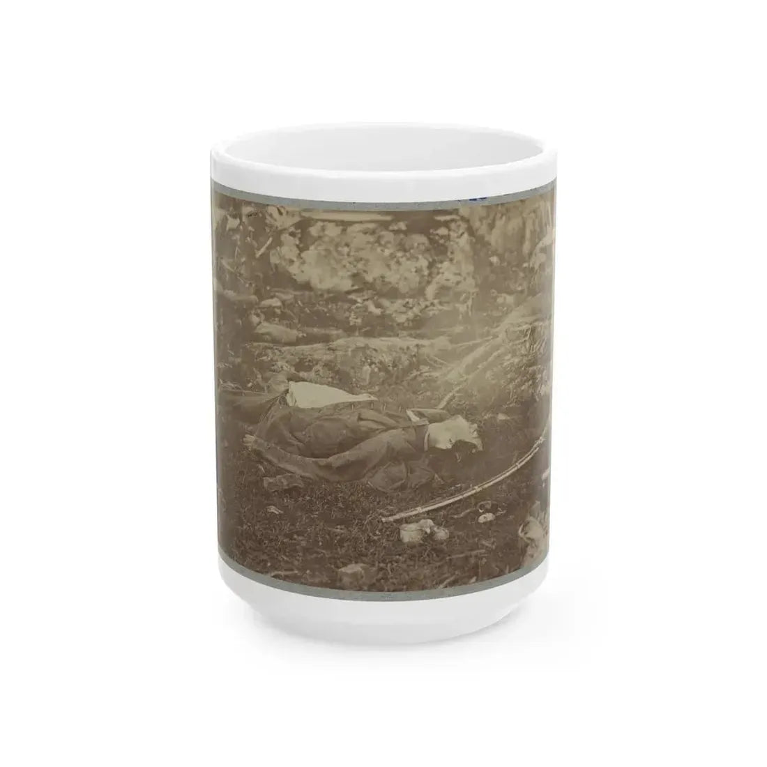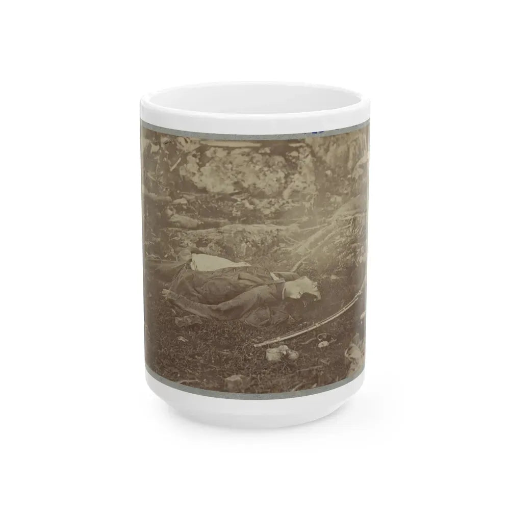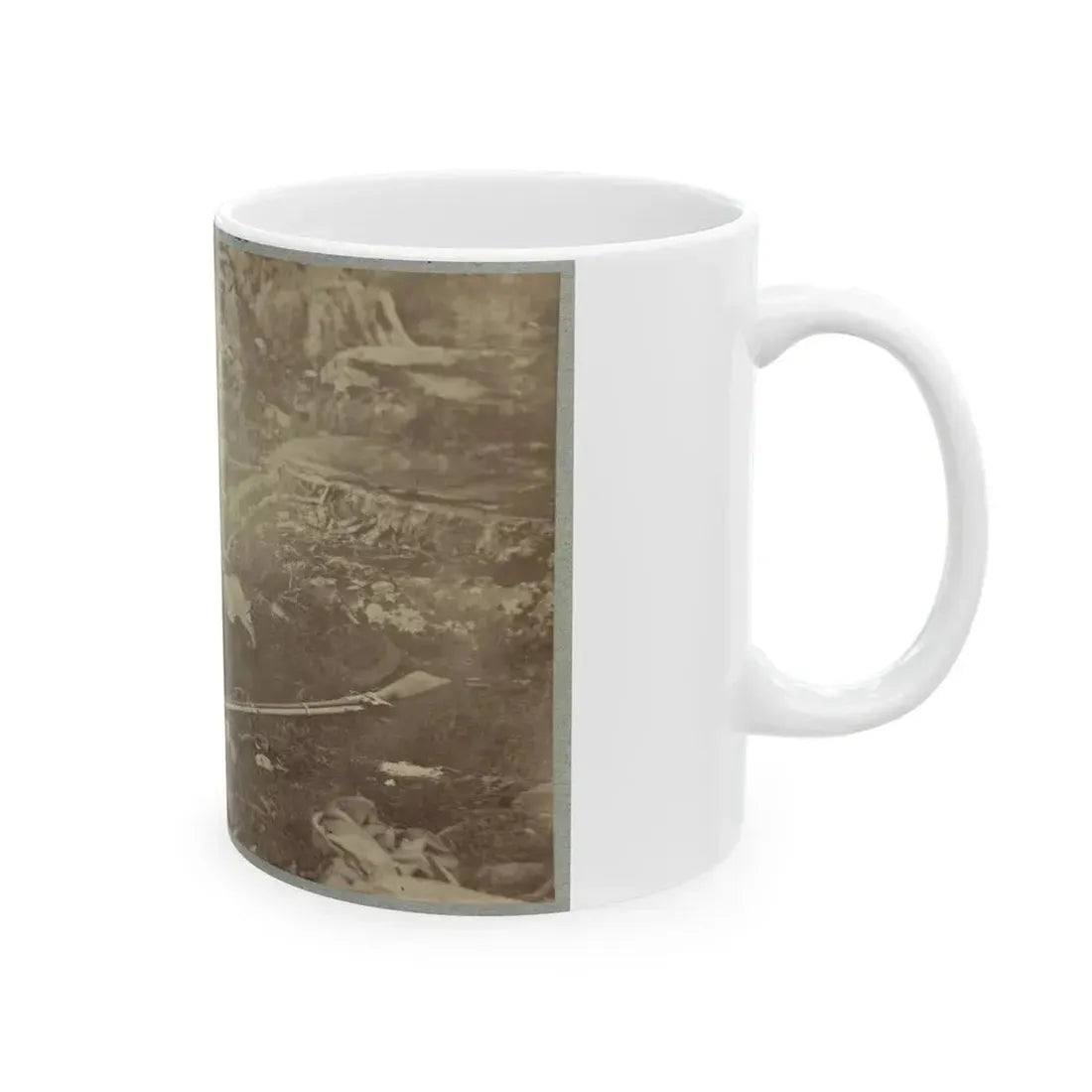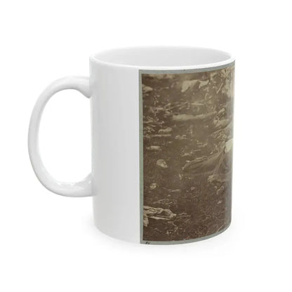 Battlefield Of Gettysburg. Dead Confederate Sharpshooter At Foot Of Little Round Top (U.S. Civil War) White Coffee Mug