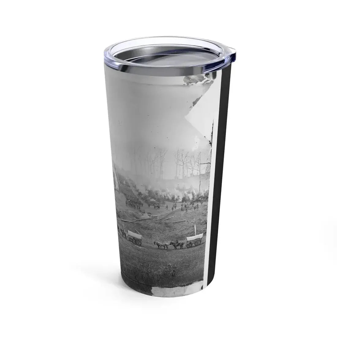 Belle Plain, Virginia, Camp of 150th Pennsylvania Infantry (U.S. Civil War) Tumbler is a unique piece of historical memorabilia that commemorates one of the many temporary encampments established during the American Civil War. This 20oz tumbler showcases an intricate design, featuring a detailed rendition of Belle Plain, a strategic location on the Potomac River that served as a base for Union troops. The artwork pays homage to the soldiers who temporarily called this site home, providing a glimpse into their day-to-day life during one of the most tumultuous periods in American history.