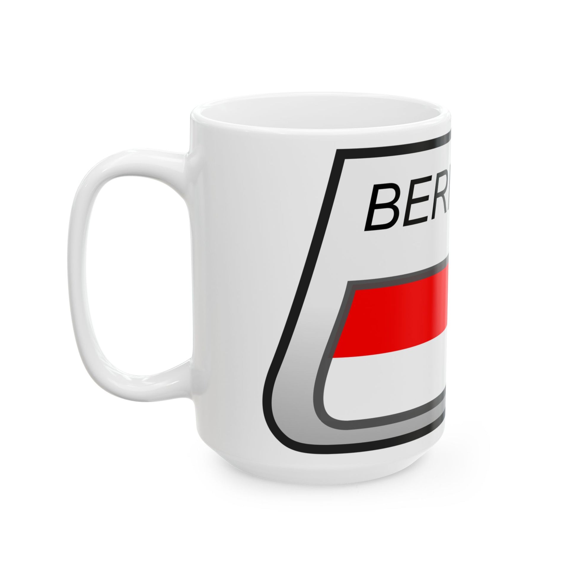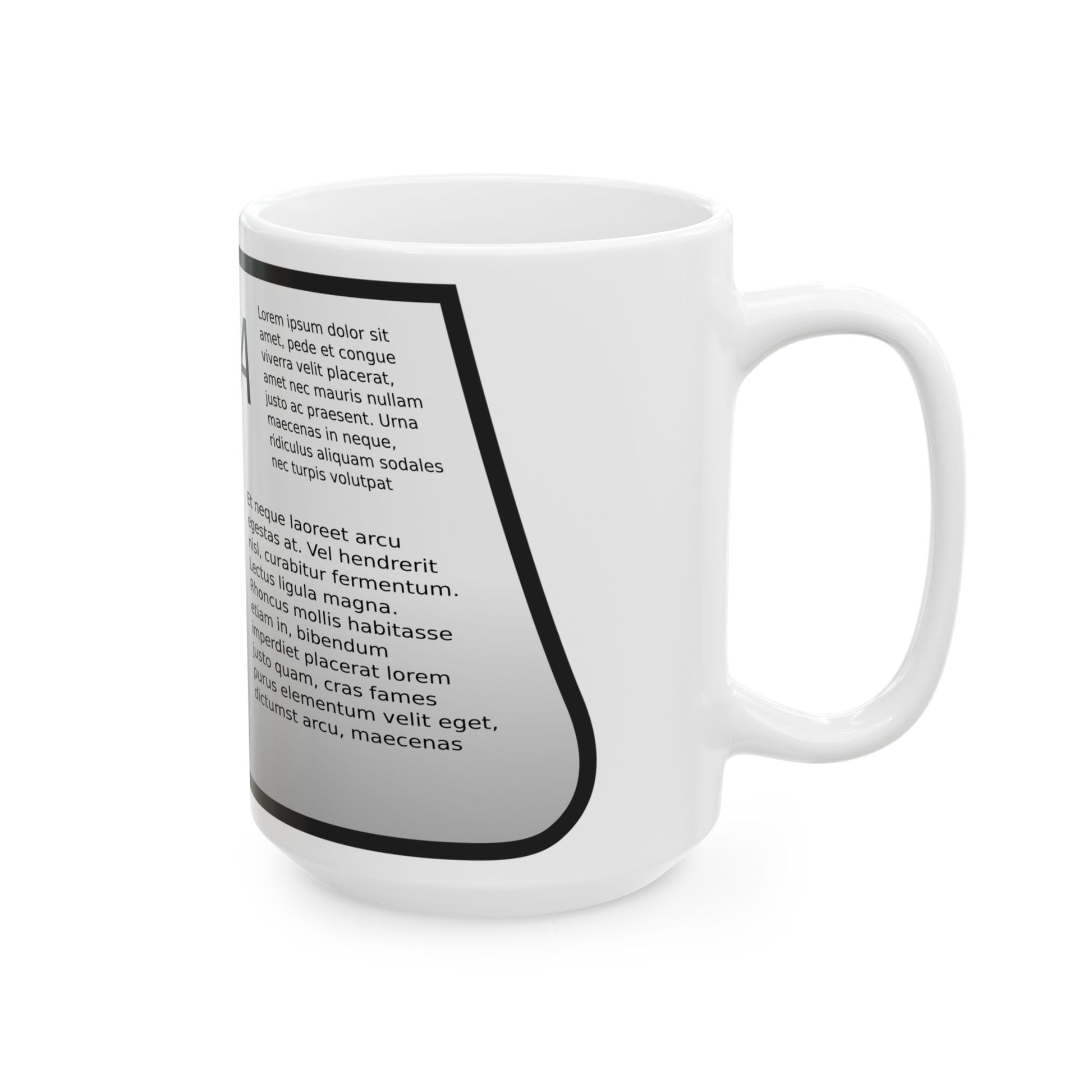Sturdy white ceramic mugs available in 11 oz (β‰ˆ330 ml) and 15 oz (β‰ˆ440 ml), with a glossy finish and comfortable C-handle β€” microwave and dishwasher safe, and made from lead- and BPA-free materials.