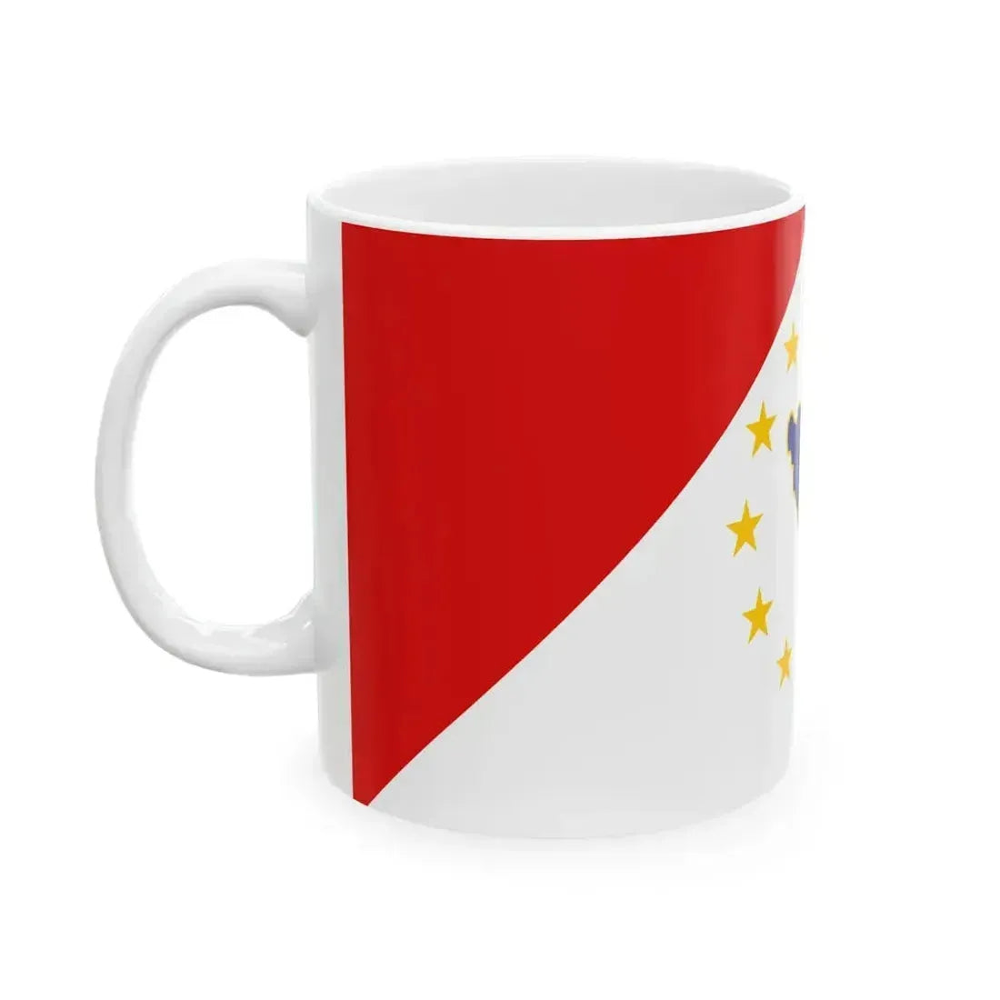 The BH Second Alternative Flag of Second Proposal White Coffee Mug is a great addition to your collection or a thoughtful gift for someone with a passion for flags, Bosnia and Herzegovina's history, or just unique drinkware. The ceramic construction ensures durability while the white background allows the intricate design to stand out beautifully. Whether you're starting your day with a hot cup of coffee or unwinding in the evening, this mug adds a touch of cultural significance to your beverage-drinking experience.