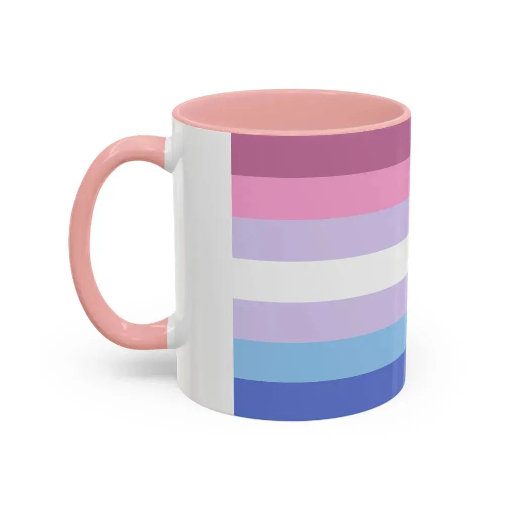 The Bigender Pride Flag Accent Coffee Mug is a thoughtful and inclusive piece of drinkware that celebrates gender diversity. The design features the bigender pride flag, a symbol representing individuals who identify as both male and female. Consisting of white, purple (left), and pink (right) stripes, this flag represents the harmony between the two genders within an individual. This mug serves as a powerful reminder of the importance of acceptance, respect, and self-expression for all people, regardless of their gender identity.