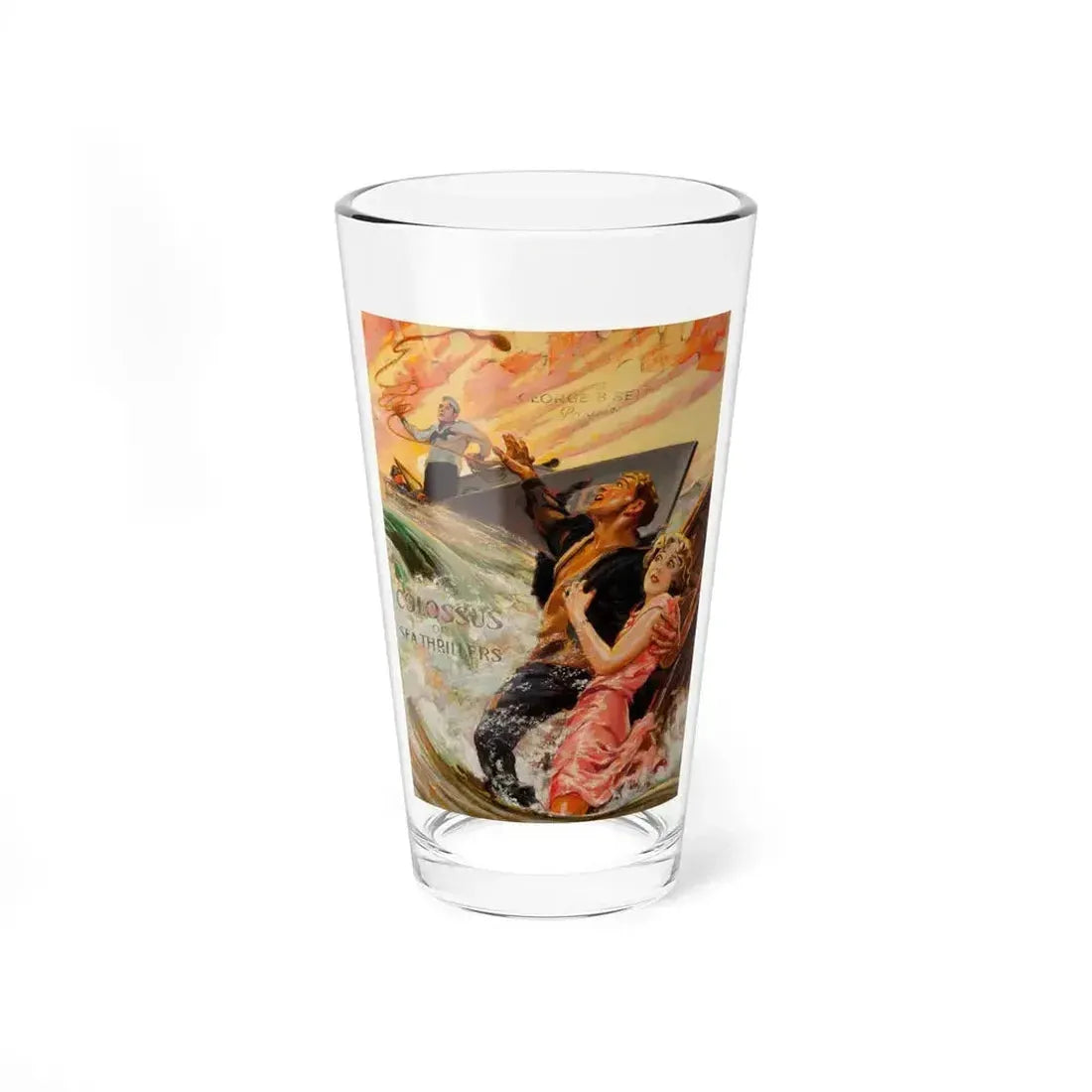 Whether you're a history buff captivated by the golden age of cinema or simply someone who loves collecting extraordinary items, this Blockade, Colossus of Sea Thrillers pint glass will become an intriguing addition to your collection. With its vivid details and timeless design, it is perfect for entertaining guests or simply enjoying a beverage in style.