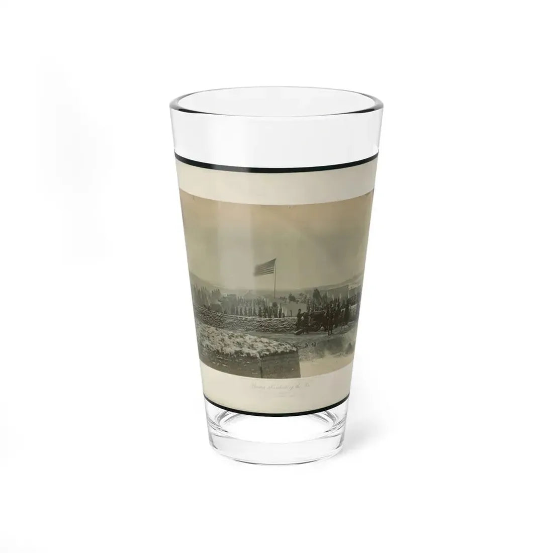 The detailed artwork on this glass portrays the daily life and struggles faced by soldiers during the U.S. Civil War. The vivid illustration brings the past to life, providing a tangible connection to an important era in American history. This pint glass is not just a drinking vessel but also serves as a historical artifact that can stimulate conversations about our nation's past. Perfect for anyone who appreciates unique and cool drinkware with a historic twist.
