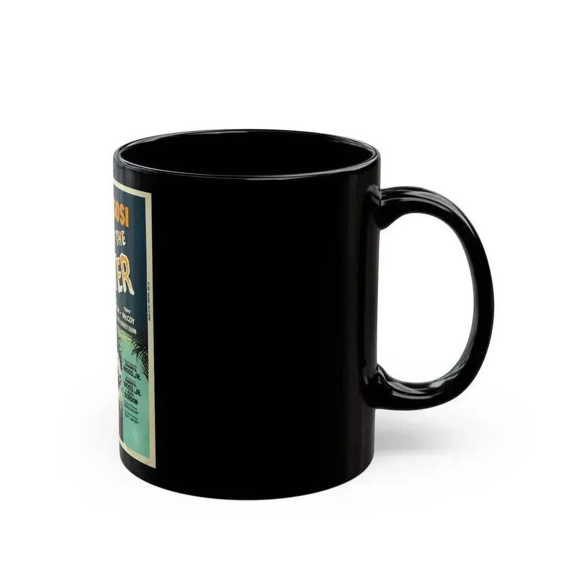 Step into the world of classic B-movies with this Bride of the Monster (1955) themed Black Coffee Mug. This design features an artistic rendition of the iconic movie poster, showcasing Eddie Brock and his creation, The Creature, along with their brides, Lorelei and Carol, in a hauntingly beautiful setting. This unique coffee mug is perfect for any fan of science fiction, horror movies, or retro aesthetics. Its print ensures the artwork remains vibrant, even after multiple uses.