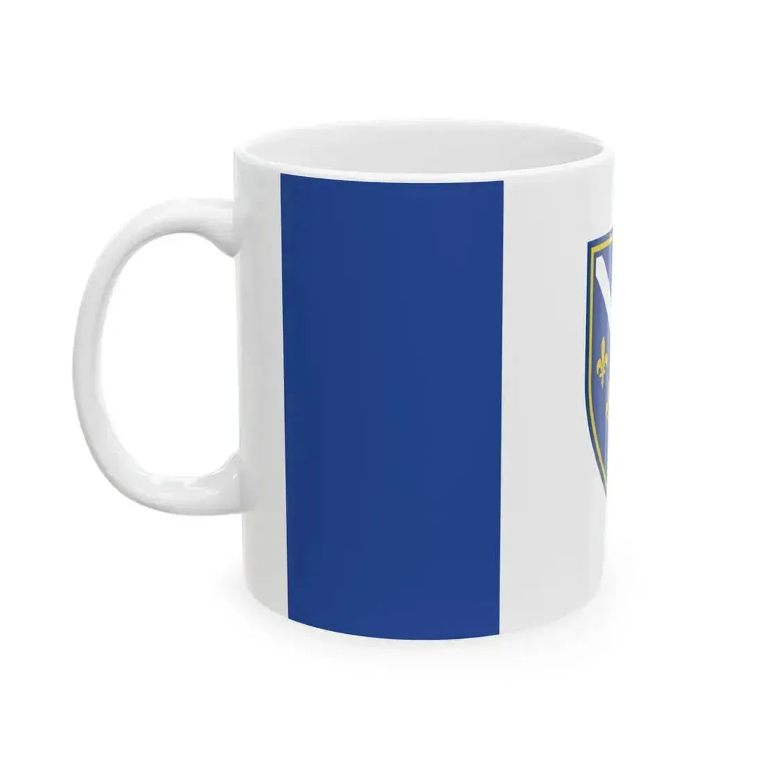 This White Coffee Mug showcases a unique design inspired by the proposed flag of Bosnia and Herzegovina, also known as the BUD (Bosna i Hercegovina) flag proposal. The design features six horizontal stripes in the colors of red, blue, and white, symbolizing unity, peace, and freedom. The central emblem, depicting a cogwheel and an eagle, represents the industrial potential and independence of the nation. This mug makes an excellent choice for anyone who appreciates unique and cool drinkware, as well as those with a keen interest in Bosnia and Herzegovina's history or flag designs.