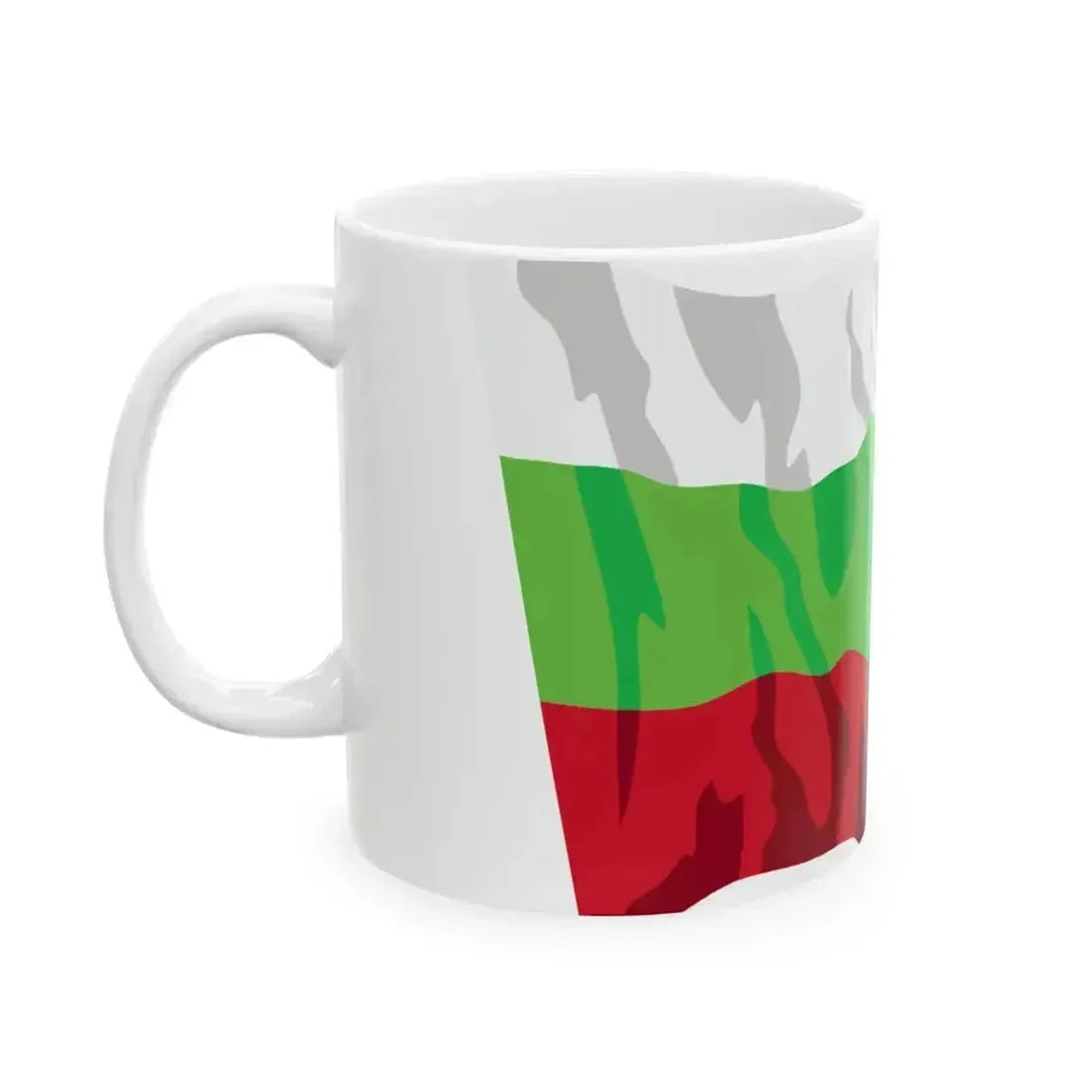 This Bulgaria flag waving icon white coffee mug is a testament to the rich history and culture of Bulgaria. The design features an elegant interpretation of the Bulgarian flag, with its tricolor bands symbolizing peace, freedom, and faith. The wave-like movement adds a dynamic touch, suggesting resilience and unity - values deeply rooted in Bulgarian tradition. This mug is perfect for anyone who appreciates unique and cool drinkware, as well as those with an affinity for the Eastern European nation.