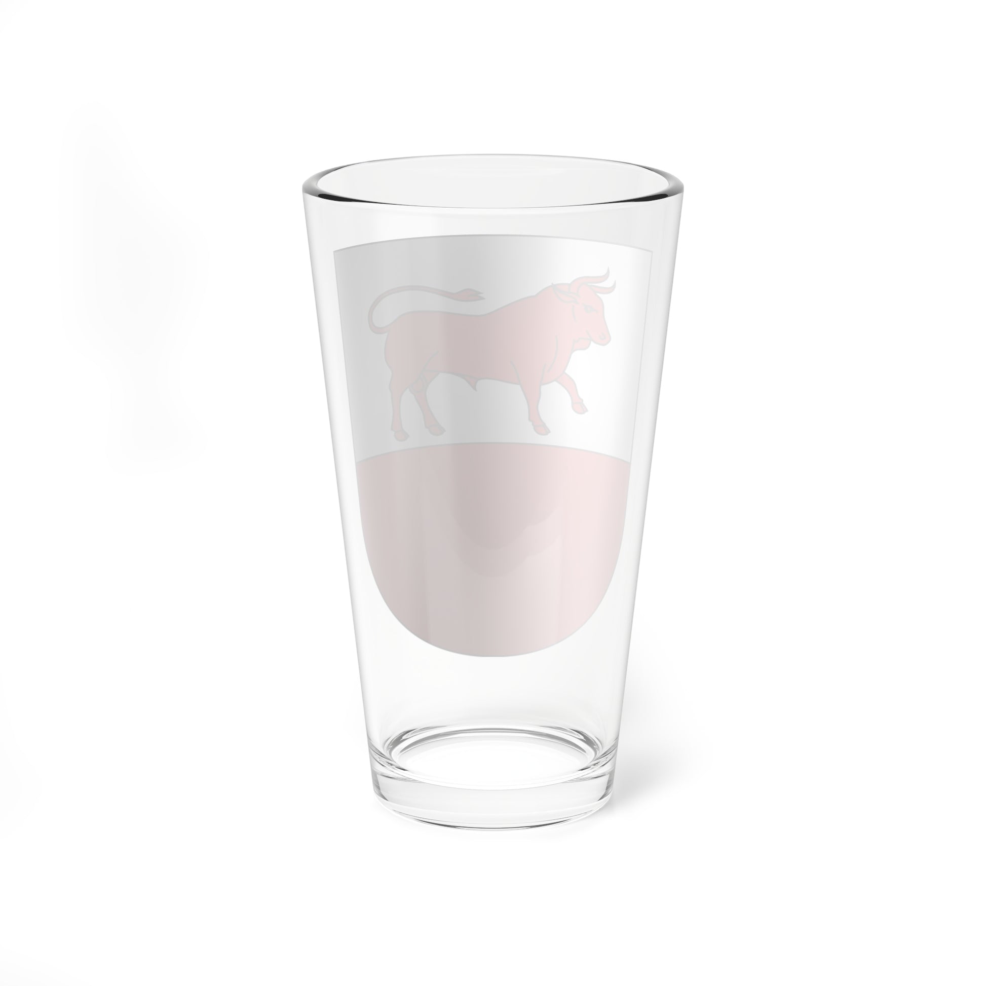 This pint glass showcases the heraldic artistry of the Bulle coat of arms, a symbol of the Swiss town. The design is a striking visual statement, meticulously rendered for clarity and impact.