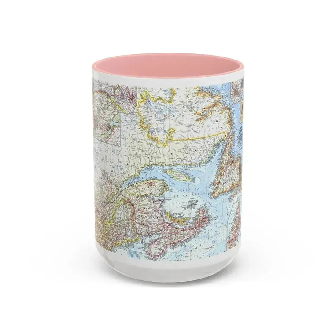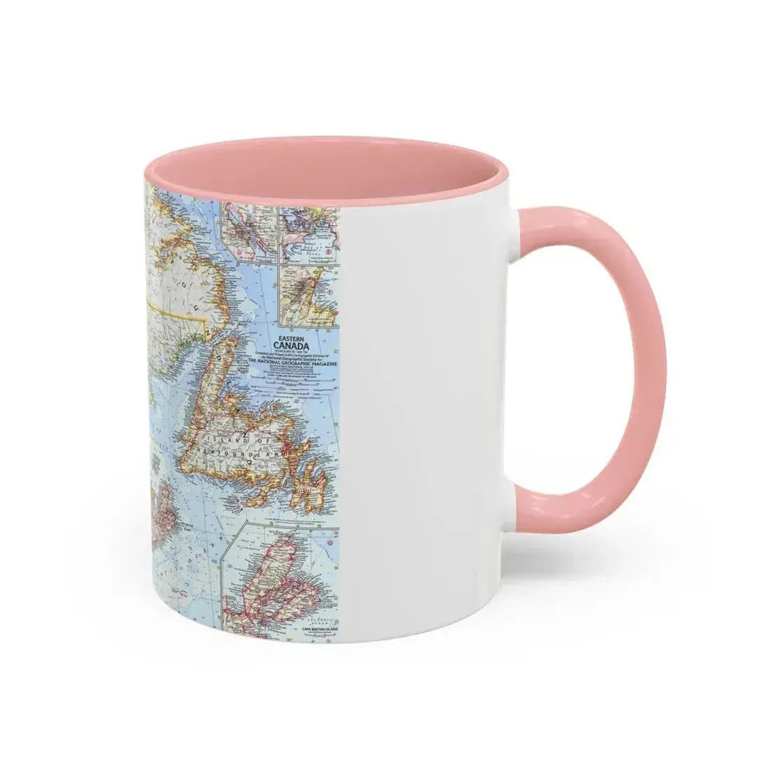 Perfect for anyone who appreciates unique and cool drinkware, this "Canada - Eastern (1967) Map" Accent Coffee Mug is not just a mug but also a fascinating conversation starter about the history of Canada's eastern provinces and territories.