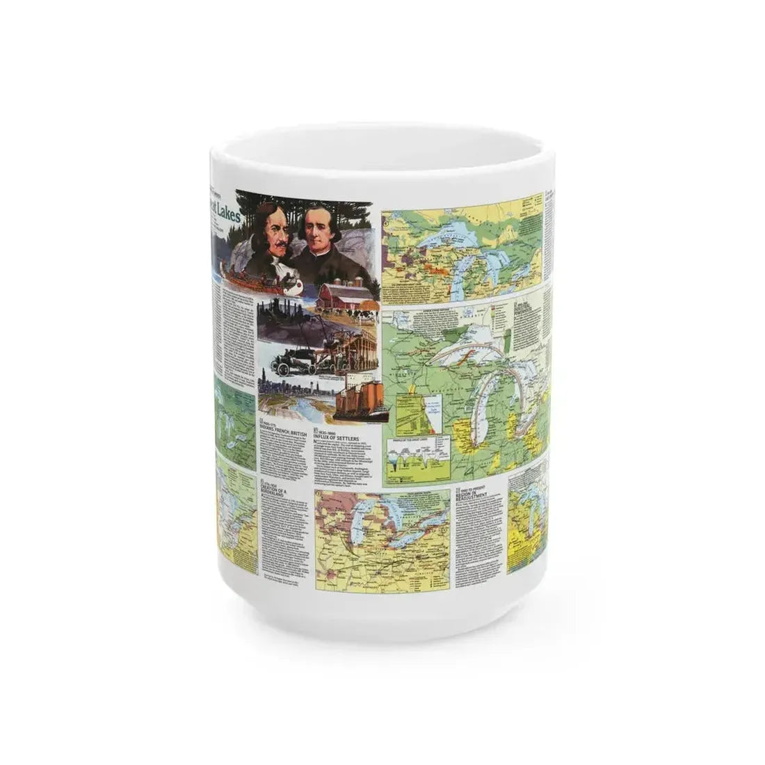 The intricate depiction of the Great Lakes on this mug transports you back in time to 1987, offering an insightful look at the region's geographical evolution. Whether enjoying your morning coffee or evening tea, this mug serves as a conversation starter and a delightful reminder of Canada's breathtaking landscapes. Perfect for anyone who appreciates unique and cool drinkware, this Canada - The Great Lakes 2 (1987) White Coffee Mug is not just a practical addition to your daily routine, but also a charming keepsake that tells a story about our beautiful planet.